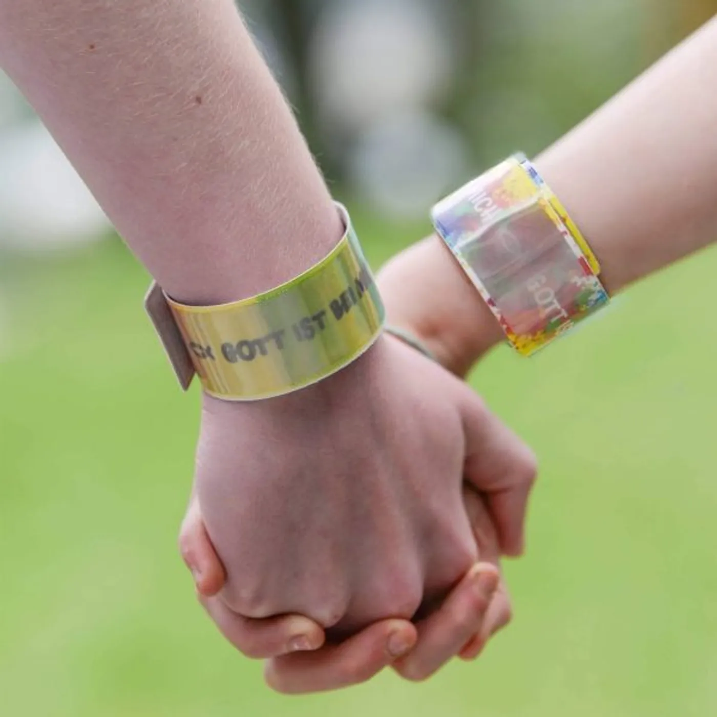 Die fallen auf: Unsere reflektierenden Schlüsselanhänger (Art.-Nr. 972918 und 972919) und Schnapparmbänder (Art.-Nr. 975318 und 975319) sind nicht nur ein modisches Accessoire, sondern auch ein wichtiger Begleiter in der Dunkelheit. Dank ihrer reflektierenden Eigenschaften sorgen sie dafür, dass man auch bei schlechten Lichtverhältnissen besser gesehen wird. Bedruckt sind die Armbänder mit den stärkenden Worten „Gott liebt mich – Gott ist bei mir – Gott beschützt mich“.