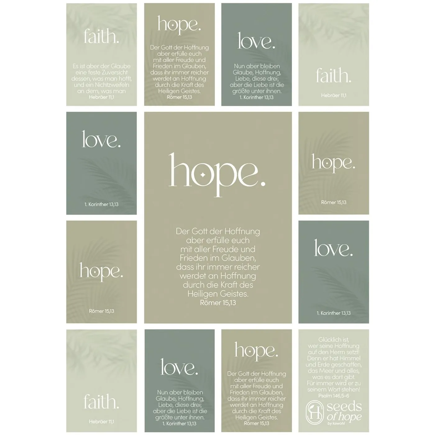 Nun aber bleiben Glaube, Hoffnung, Liebe, diese drei; aber die Liebe ist die größte unter ihnen. 1. Korinther 13,13