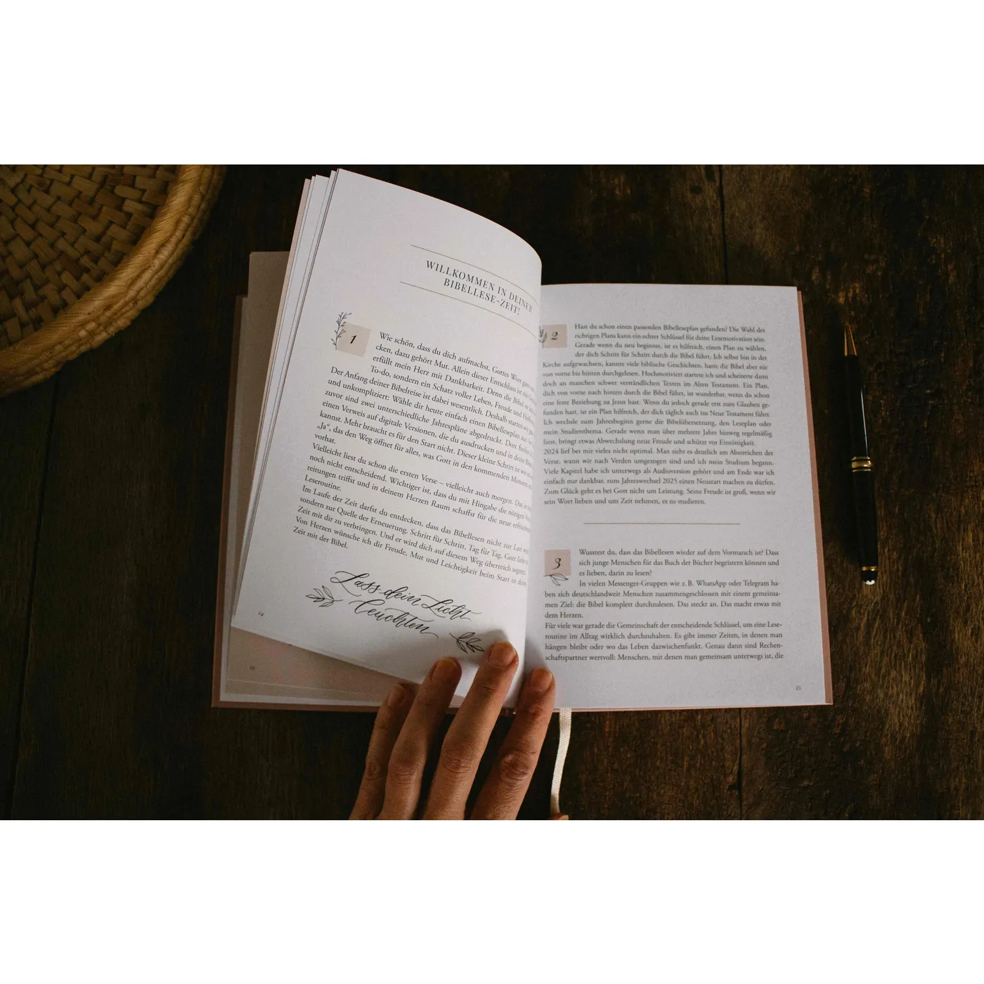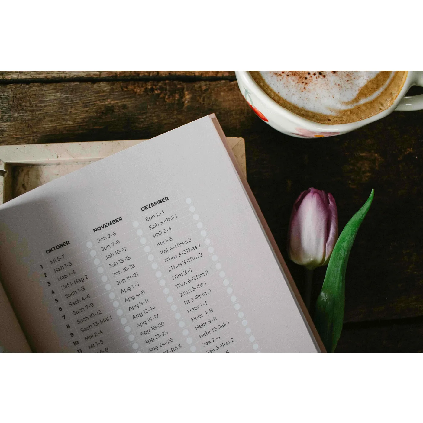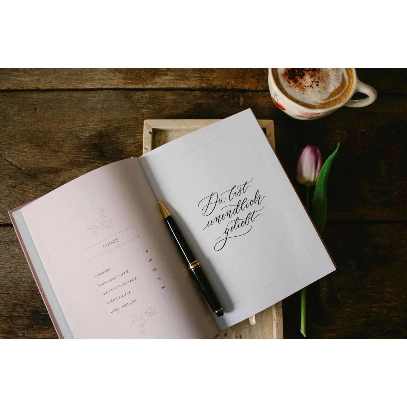 Mit inspirierenden Fragen, übersichtlichen Bibelleseplänen und kunstvoll kalligrafierten Bibelversen.