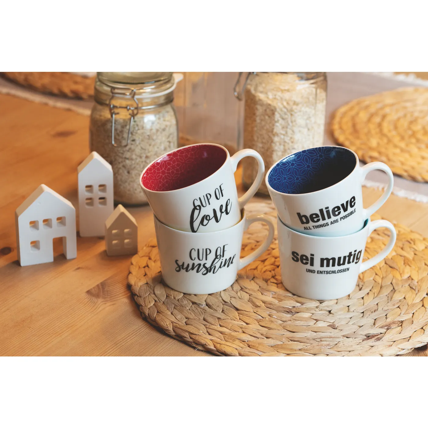 Versüßen Sie sich Ihre Tee- oder Kaffeerunde mit dieser farbenfrohen Tasse. Sie ist mit einer wertvollen Botschaft und einem Bibelvers versehen und verbreitet selbst bei tristem Wetter gute Laune. Dies ist ein von Hand dekoriertes Produkt. Die Tassen können daher in Form und Farbe variieren.