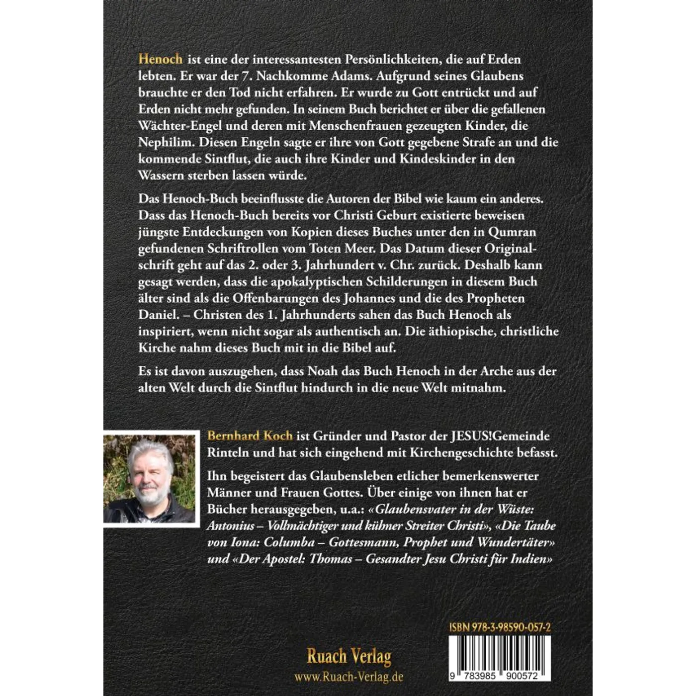 Henoch ist eine der interessantesten Persönlichkeiten, die auf Erden lebten. Er war der 7. Nachkomme Adams. Aufgrund seines Glaubens brauchte er den Tod nicht erfahren. Er wurde zu Gott entrückt und auf Erden nicht mehr gefunden. In seinem Buch berichtet er über die gefallenen Wächter-Engel und deren mit Menschenfrauen gezeugten Kinder, die Nephilim. Diesen Engeln sagte er ihre von Gott gegebene Strafe an und die kommende Sintflut, die auch ihre Kinder und Kindeskinder in den Wassern sterben lassen würde.