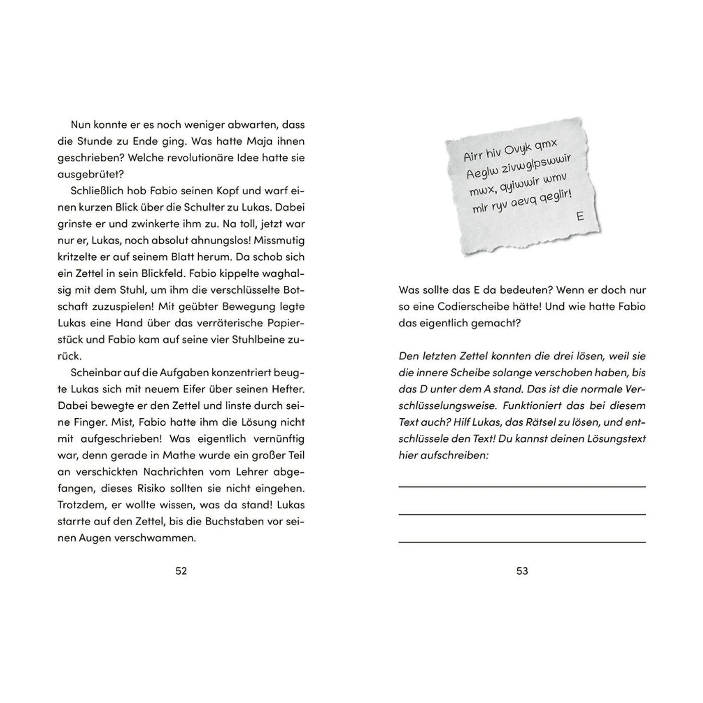 Tolles Extra: Auf zwei Pappseiten findest du die Teile einer Dekodierkarte. Schneide sie aus und schreibe oder entschlüssele damit ganz einfach eigene Geheimschriften!