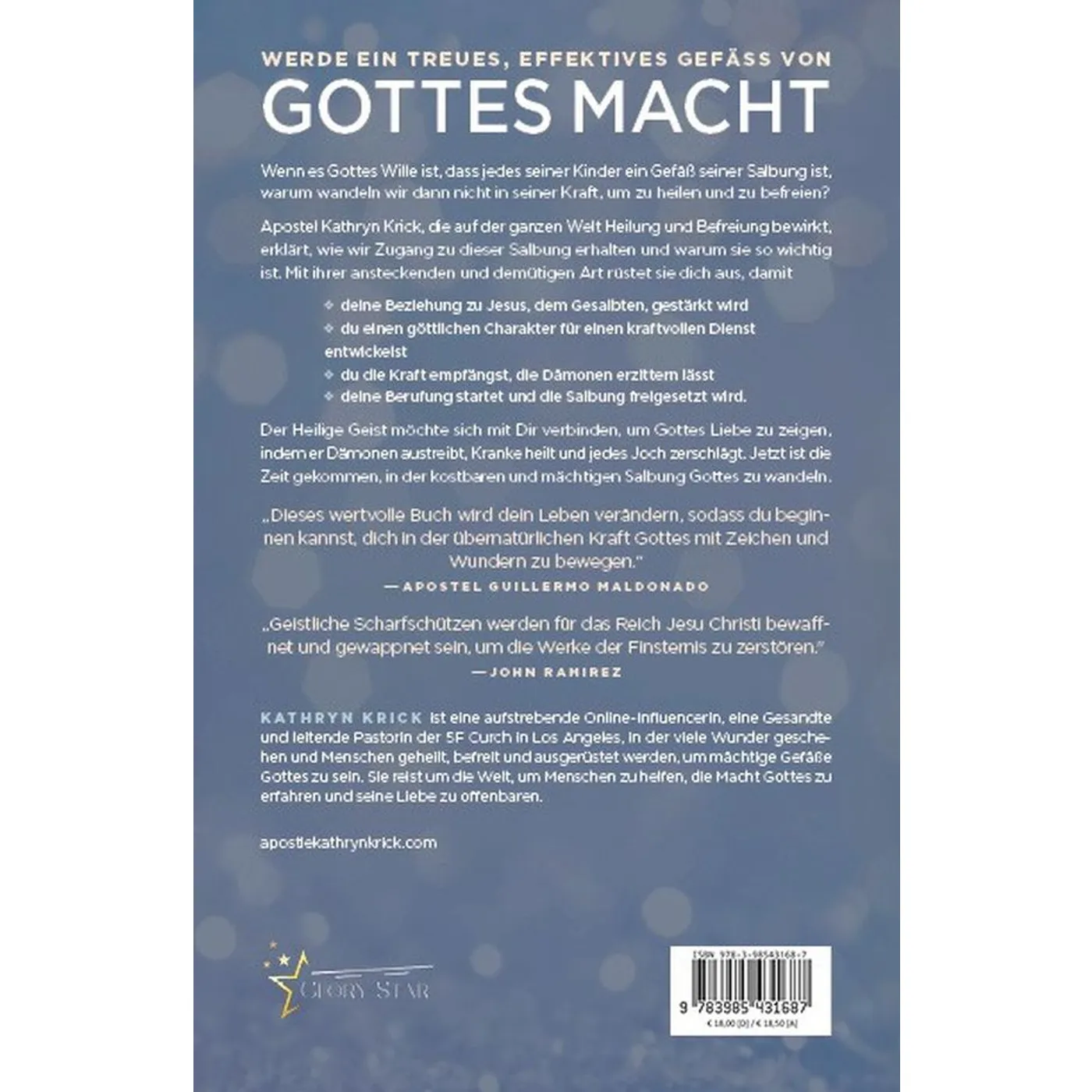 KATHRYN KRICK ist eine aufstrebende Online-Influencerin und leitende Pastorin der 5F Curch in Los Angeles, in der viele Wunder geschehen und Menschen geheilt, befreit und ausgerüstet werden, um mächtige Gefäße Gottes zu sein. Sie reist um die Welt, um Menschen zu helfen, die Macht Gottes zu erfahren und seine Liebe zu offenbaren.