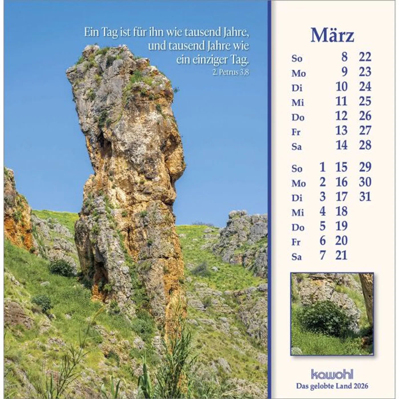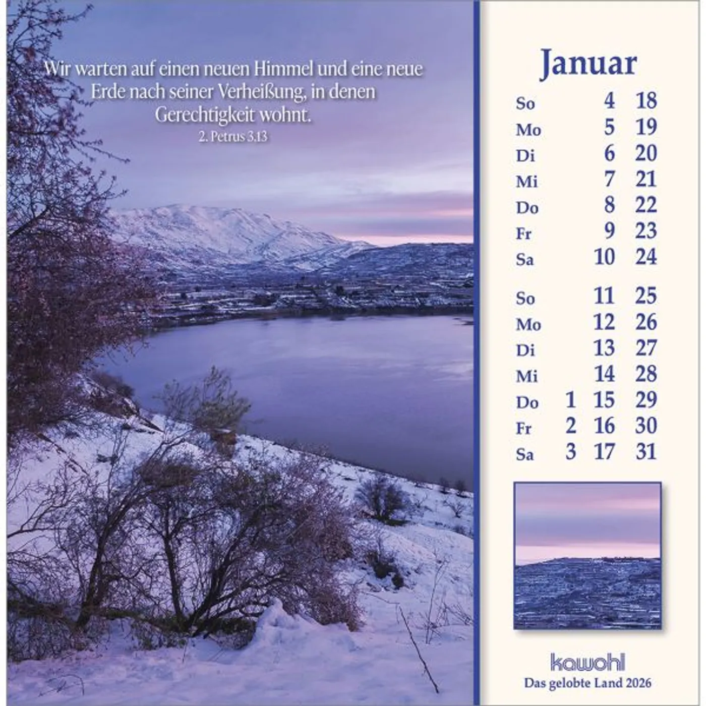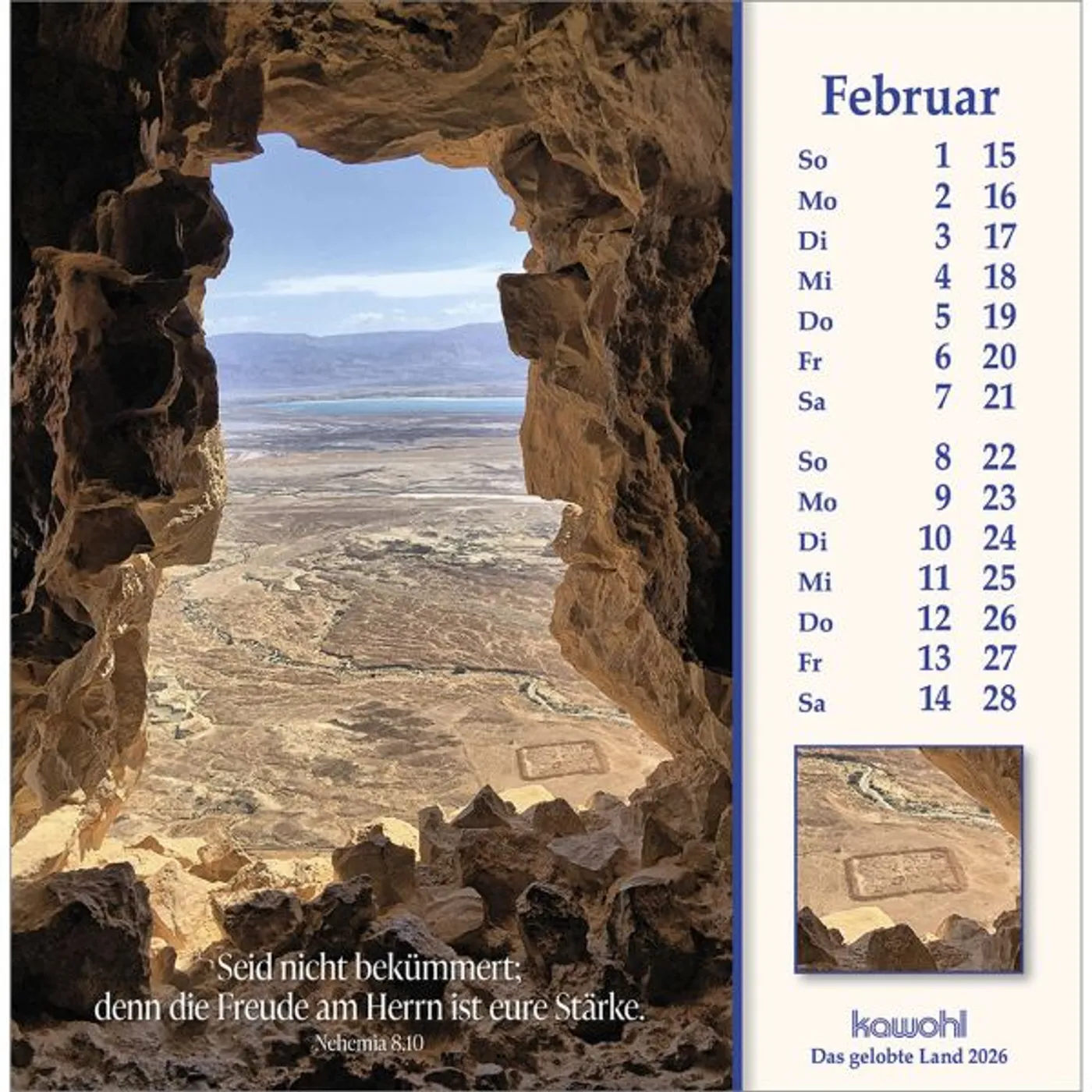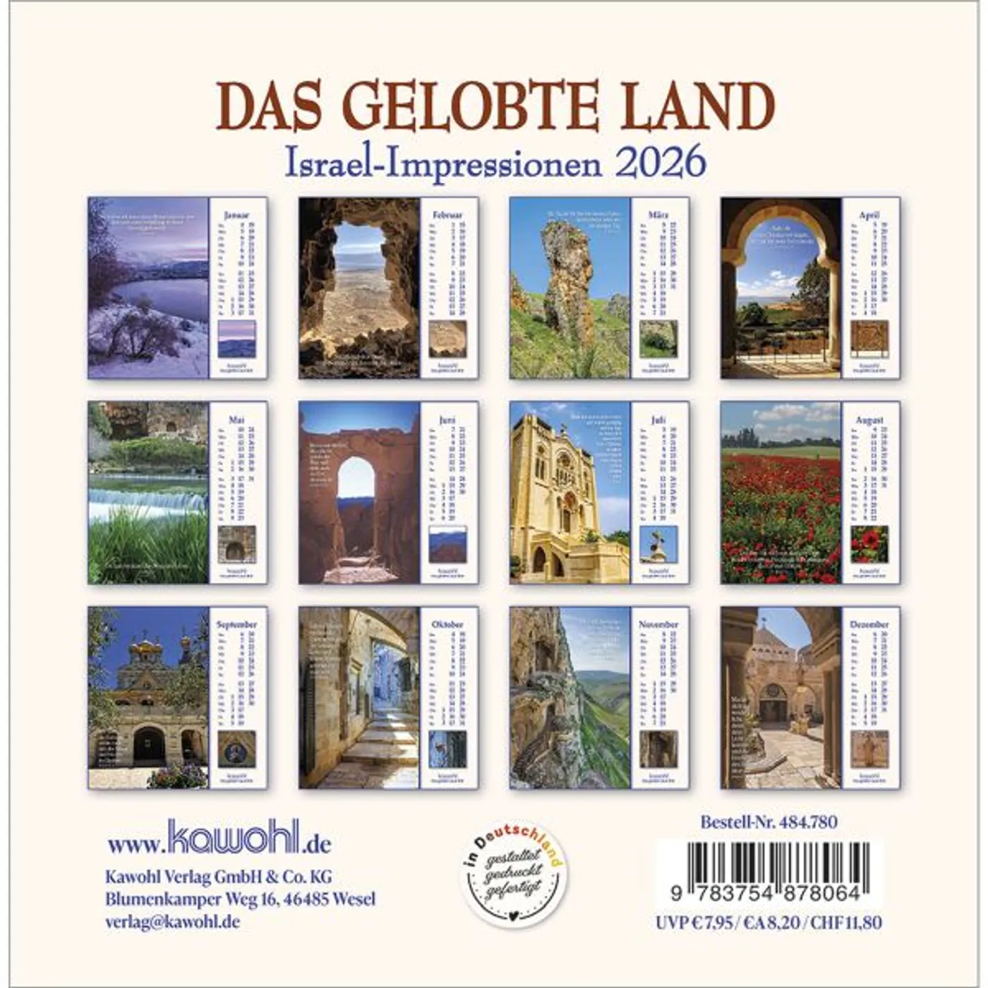 Mit herausragenden Bildern, hilfreichen Begleitinformationen (inkl. jüdischen Feiertagen) und passenden Bibelworten möchte der Israel-Kalender den Betrachter mitnehmen auf die Spuren Jesu Christi. Er möchte einen Einblick geben in das Land des Volkes Gottes, einen Eindruck von der lebendigen Gegenwart Israels.