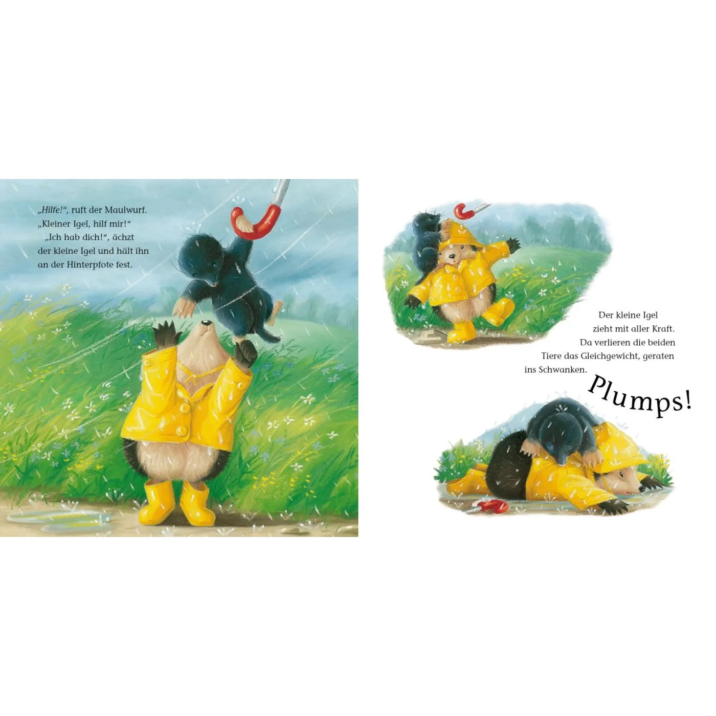 An einem typischen Herbsttag mit Regen will der kleine Igel seine tollen Regensachen ausprobieren und gerät dabei in einen Sturm.