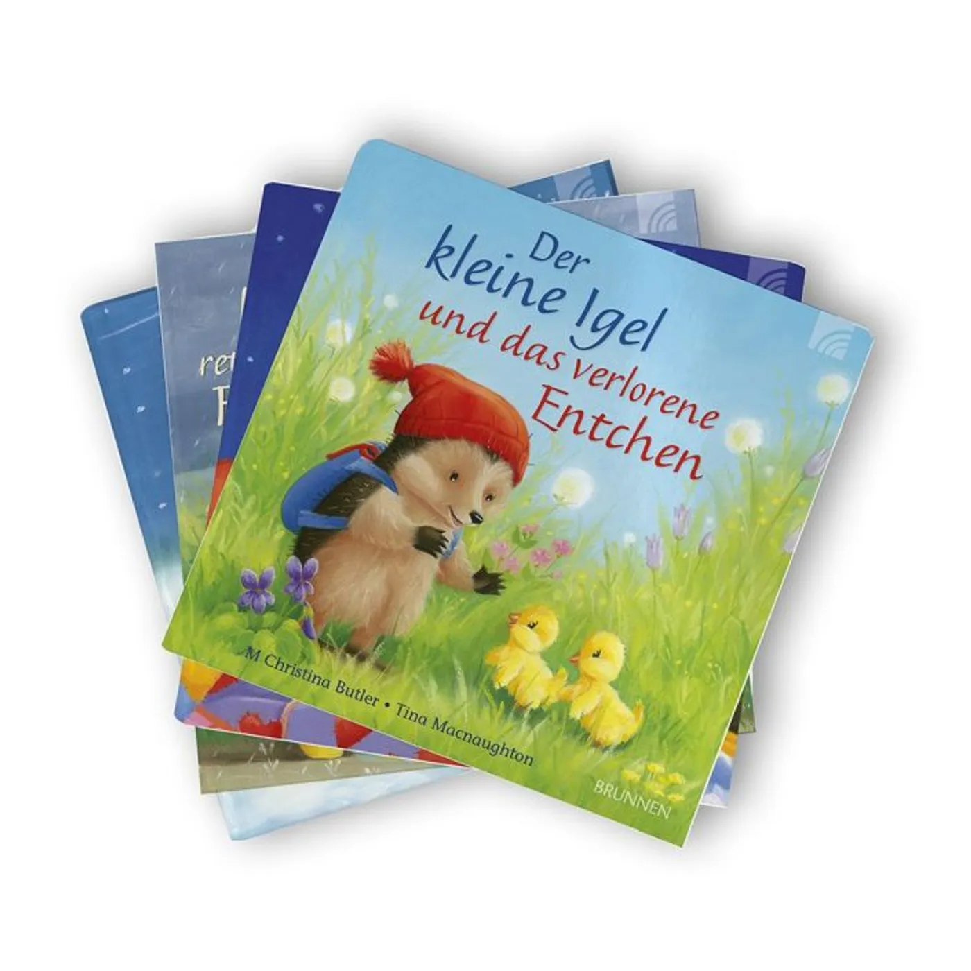 Die vier kleinen Büchlein rund um den kleinen Igel und seine Freunde, erschienen im Brunnen-Verlag,