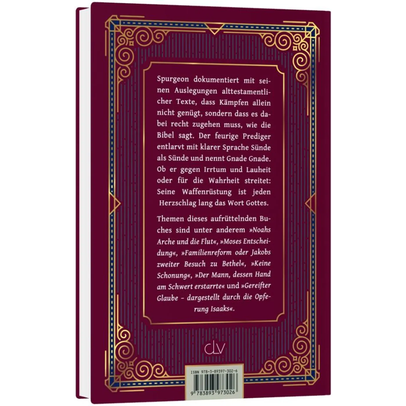 Spurgeon dokumentiert mit seinen Auslegungen alttestamentlicher Texte, daß Kämpfen allein nicht genügt, sondern daß es dabei recht zugehen muß, wie die Bibel sagt. Der feurige Prediger entlarvt mit klarer Sprache Sünde als Sünde und nennt Gnade Gnade. Ob er gegen Irrtum und Lauheit oder für die Wahrheit streitet, seine Waffenrüstung ist jeden Herzschlag lang das Wort Gottes. Themen dieses aufrüttelnden Buches sind u.a.: »Noahs Arche und die Flut«, »Moses Entscheidung«, »Familienreform oder Jakobs zweiter Besuch zu Bethel«, »Keine Schonung«, »Der Mann, dessen Hand erstarrte« und »gereifter Glaube – dargestellt durch die Opferung Isaaks«.