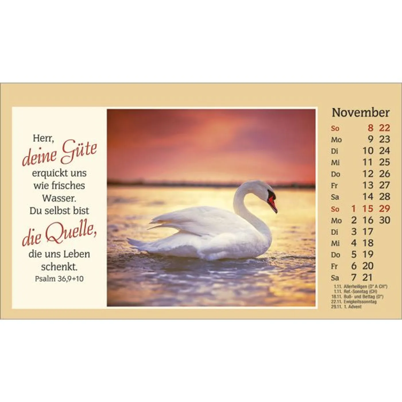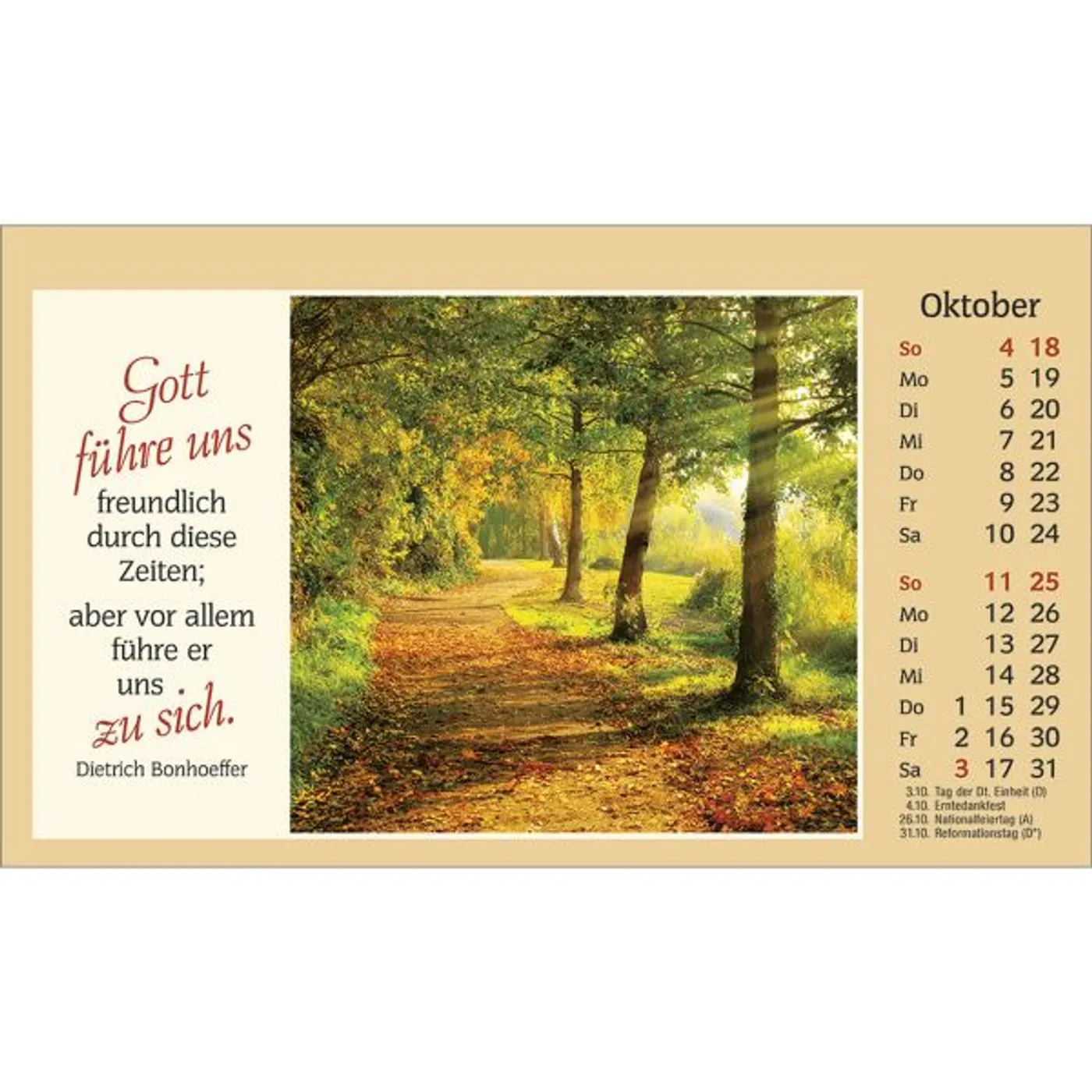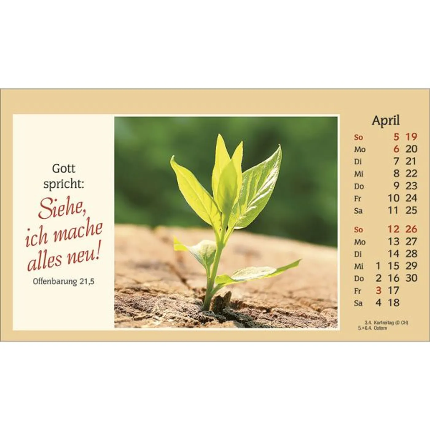 Leuchtende Blumen- und Stimmungsfotos, klar lesbare Bibelworte und gute christliche Texte, das sind die Qualitätsmerkmale dieses seit vielen Jahren beliebten und geschätzten Aufstellkalenders. Er bewirbt sich als Ihr persönlicher Begleiter durch das Jahr.