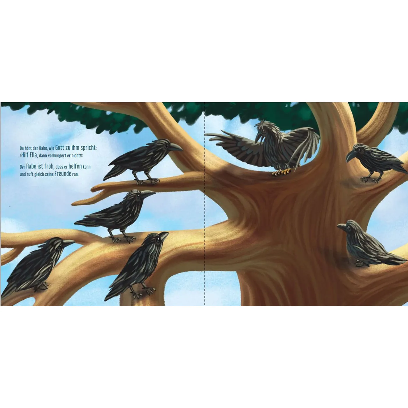 Als die Raben den Auftrag von Gott bekommen ihr Essen zu teilen, entsteht eine schöne Glaubensgeschichte in Elias Leben. Genau so kann es bei jeden von uns sein, wenn wir weitergeben, was wir bekommen haben.