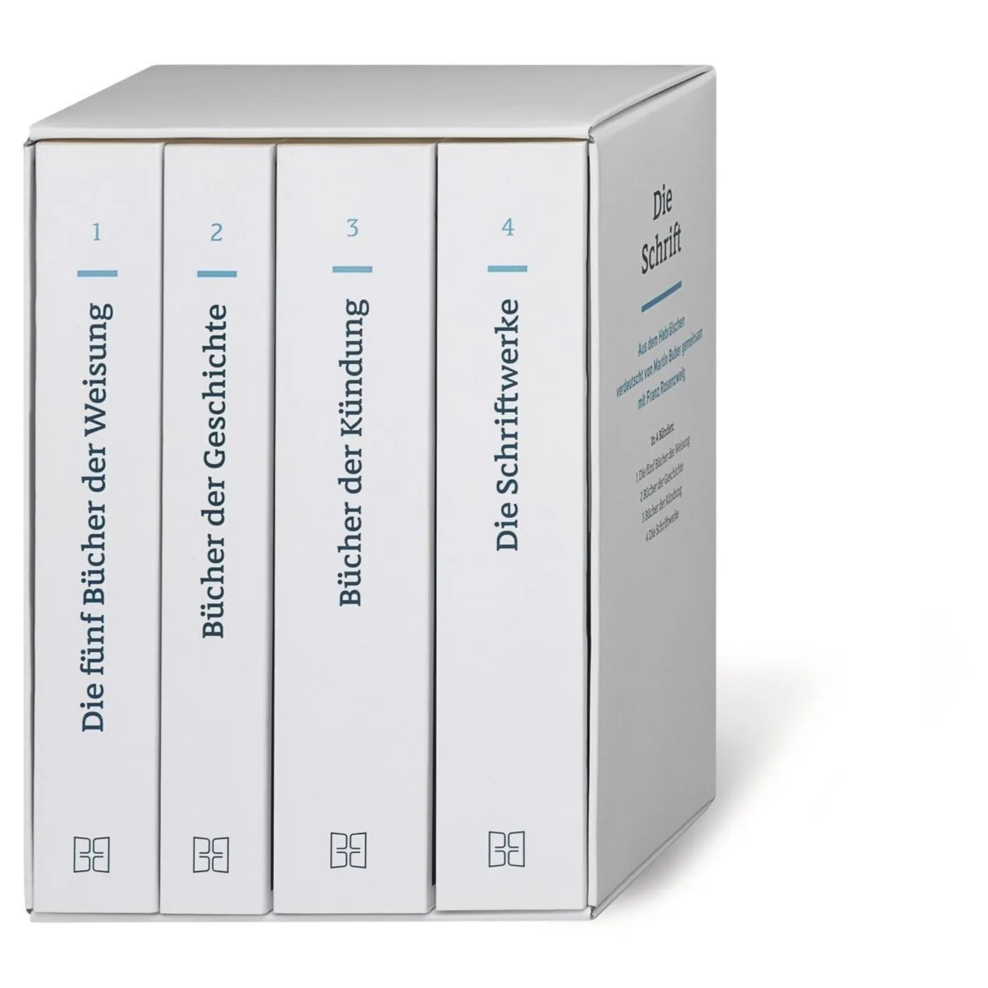 Die Bibelausgabe besteht aus vier Büchern in einem Schuber: