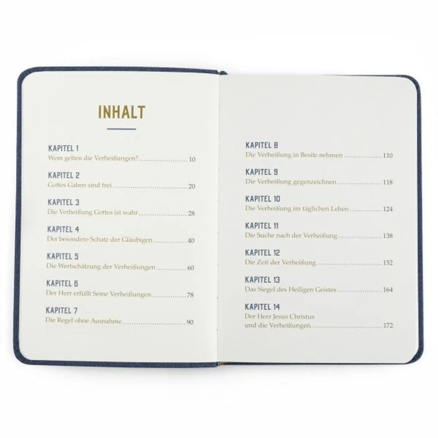 Die 14 Kapitel richten ihren Blick auf Verheißungen Gottes, im Blick auf ihren Geltungsbereich, ihre Zuverlässigkeit, ihren unschätzbaren Wert für die einzelne Seele und schließlich auf ihrer Basis: Jesus Christus, in dem alle Gottesverheißungen zusammenkommen.