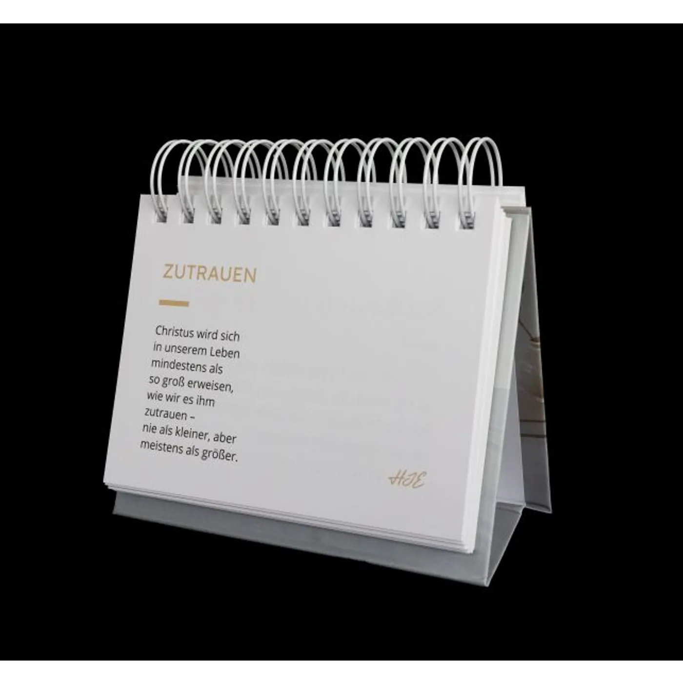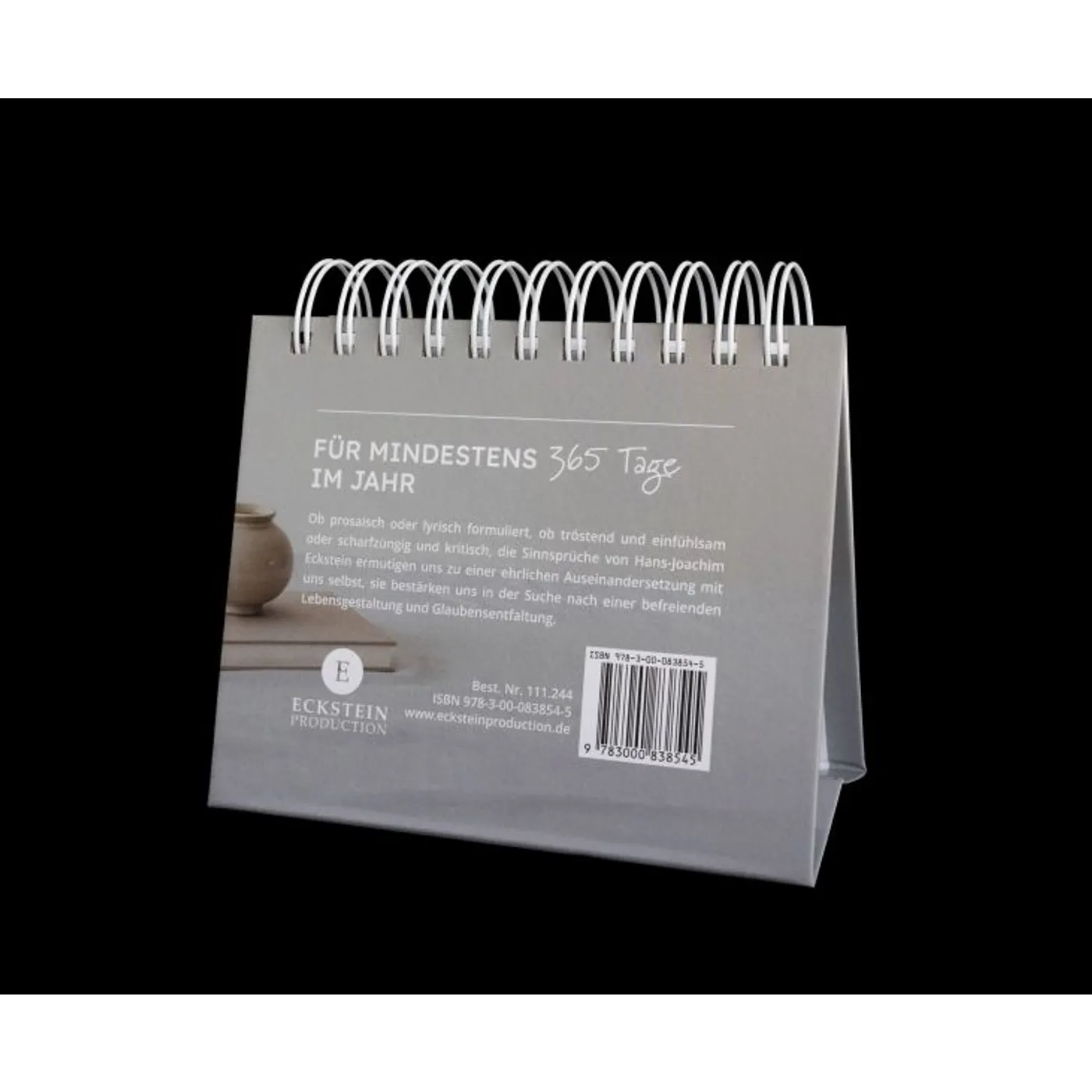 Attraktiver und hochwertiger immerwährender Spiral-Aufsteller mit Texten von Hans-Joachim Eckstein auf Vorder- und Rückseite zum Umklappen. Für jeden Tag eines Jahres (allerdings ohne Kalendarium) gibt es 366 - für mindestens 365 Tage! - Sinnsprüche und kurze Gedanken zum Tag von Hans-Joachim Eckstein.