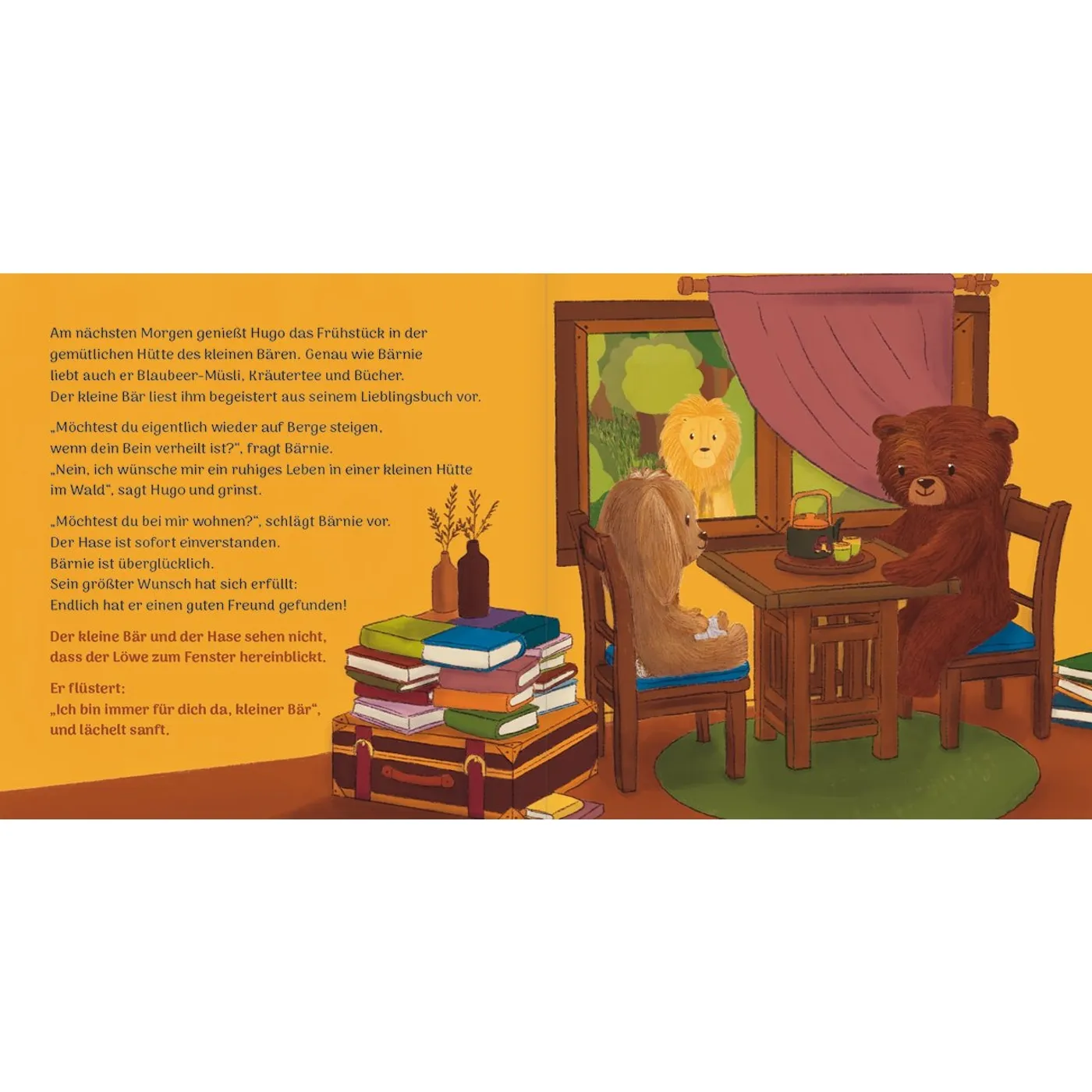 Bärnie Bär lebt einsam im großen Wald. Nichts wünscht er sich mehr als einen Freund. Doch die anderen Tiere fürchten sich vor ihm. Dass ihn jemand liebevoll im Auge behält und heimlich hilft, merkt der traurige Bär gar nicht. Vielleicht ist er gar nicht so allein, wie er denkt. Eine liebevoll illustrierte Geschichte über Freundschaft, Vertrauen und die Gewissheit: