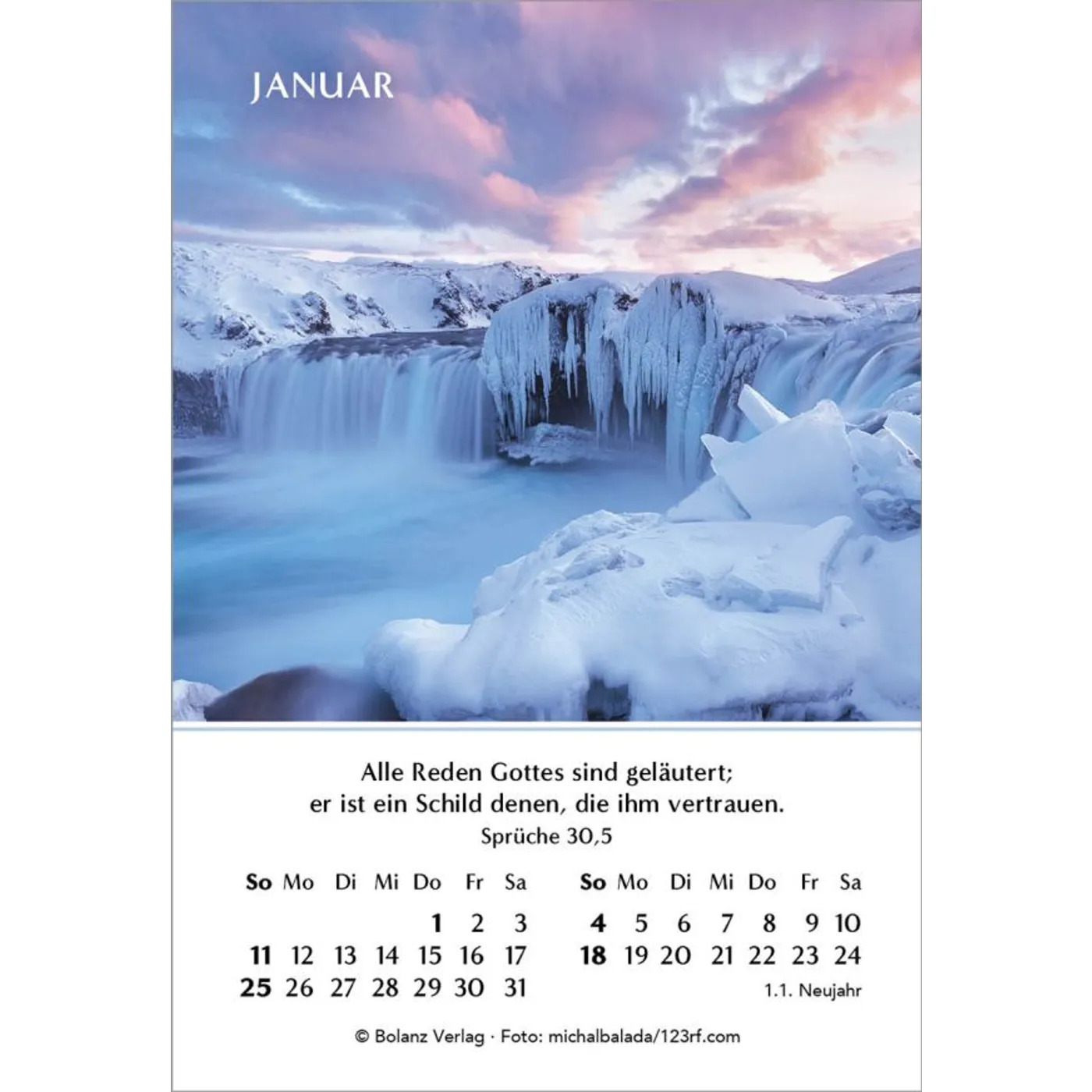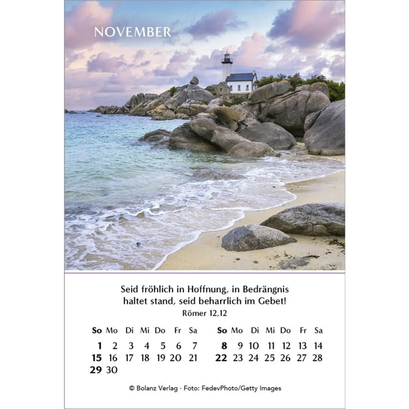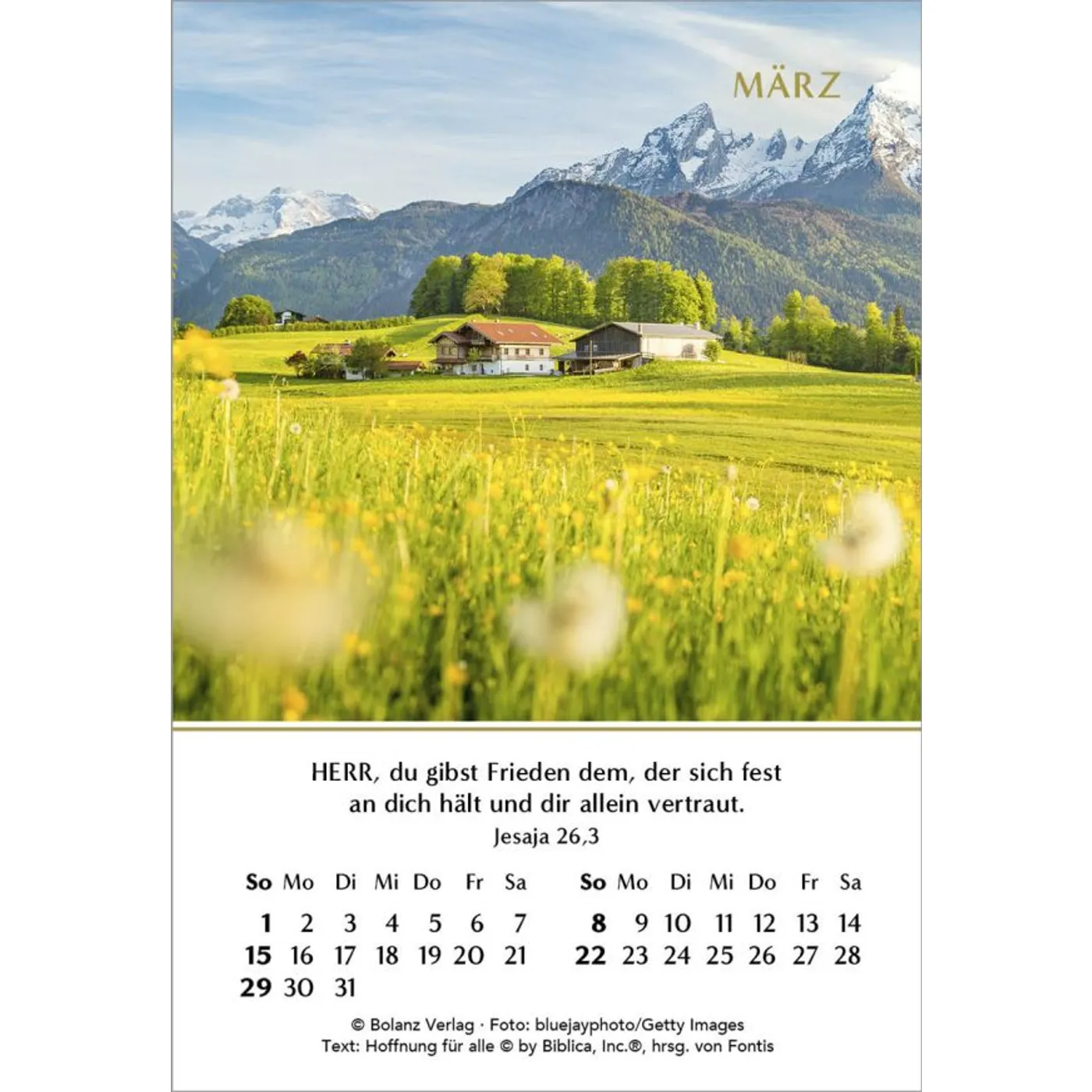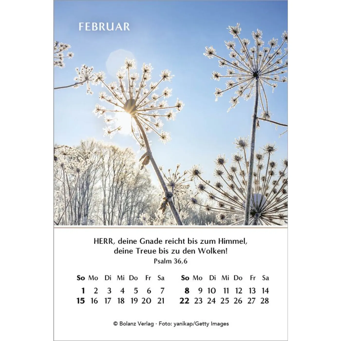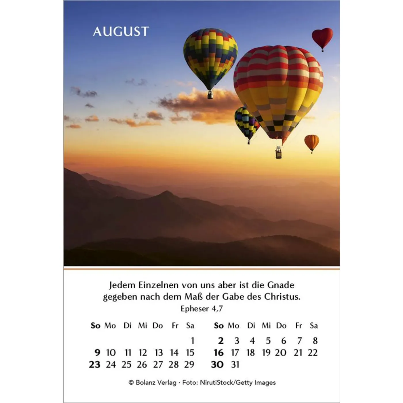 Entdecke den Mini-Kalender „Ein Jahr der Hoffnung“ und lasse Dich von stilvollen Landschafts- und Stimmungsaufnahmen begeistern, die jeden Monat mit einer Botschaft der Hoffnung erfüllen. Begleitet von passenden Bibelversen vermitteln diese Bilder Inspiration und Zuversicht, die Dir in allen Lebenslagen zur Seite stehen.