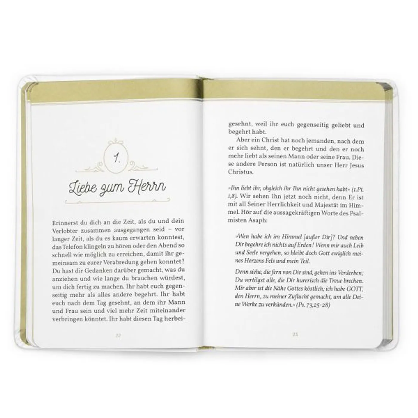 Die Lektüre setzt ein gewisses Maß an biblischem Hintergrundwissen voraus, weshalb es sich weniger für Menschen eignet, die ohne Gott im Eheleben unterwegs sind. Das Buch ist hochwertig, liebevoll und ansprechend gestaltet, was durchaus den Preis nachvollziehbar macht.