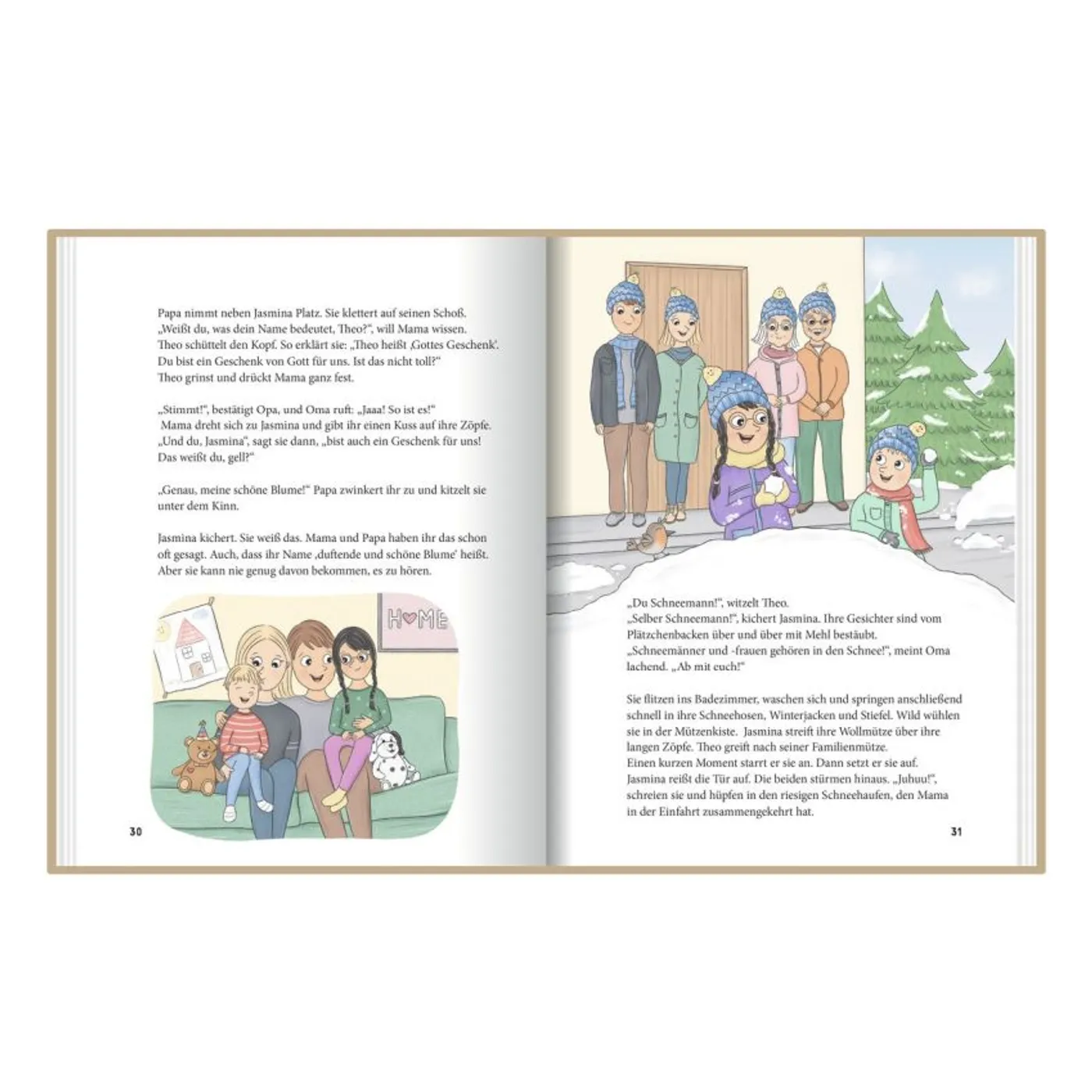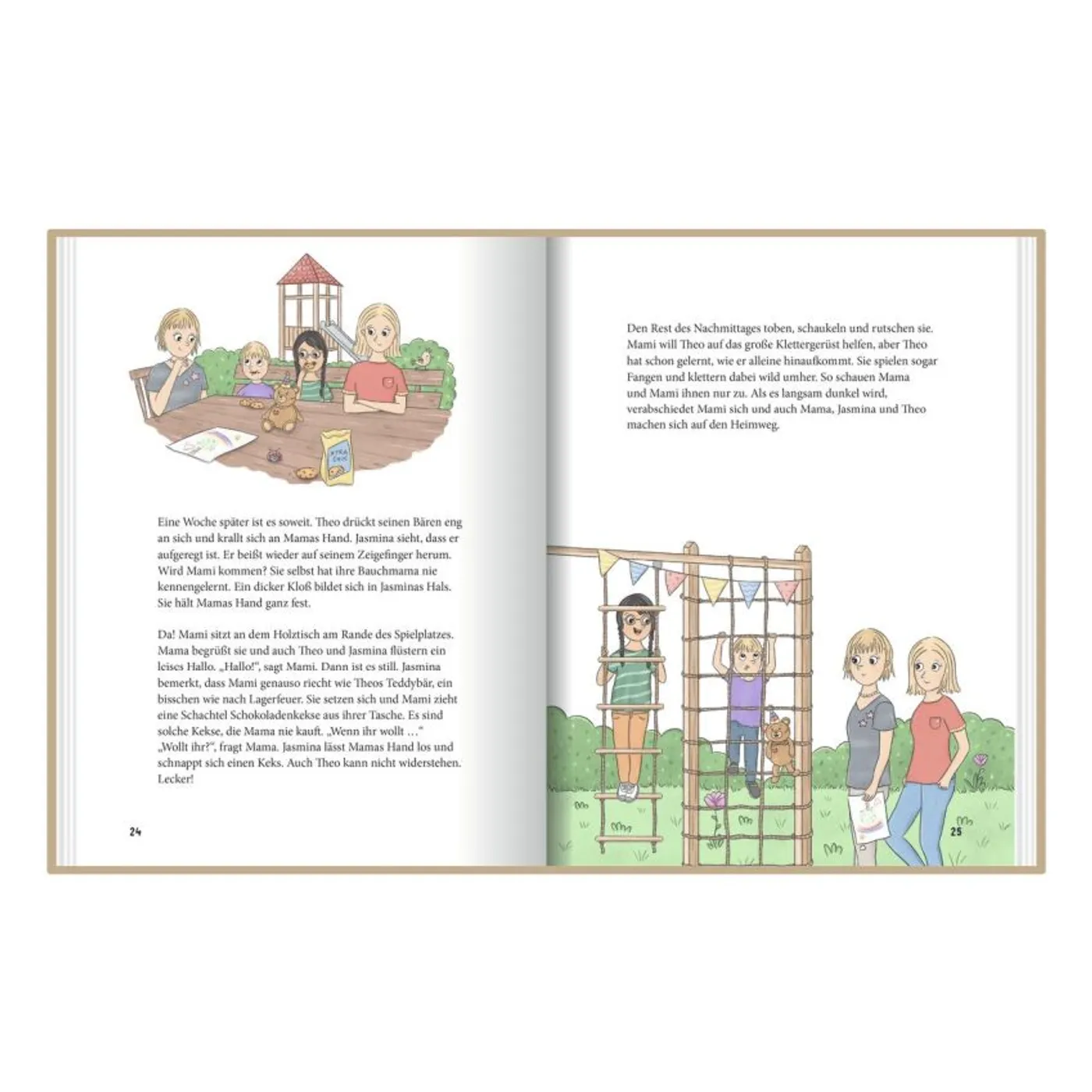 Sie erzählt in diesem schmalen Buch die Geschichte vom kleinen Theo, der aus der Kurzzeit-Pflegefamilie in seine neue Familie kommt. Dabei beschreibt sie einfühlsam und sanft sowohl Theos als auch Jasminas Gefühle. Jasmina hat sich nämlich so sehr ein Geschwisterchen gewünscht und stellt fest: Es ist nicht nur leicht. Theo braucht eine neue Familie und spürt Liebe, allerdings sind die Verunsicherungen, Ängste und Sorgen seines kurzen vorherigen Lebens präsent.