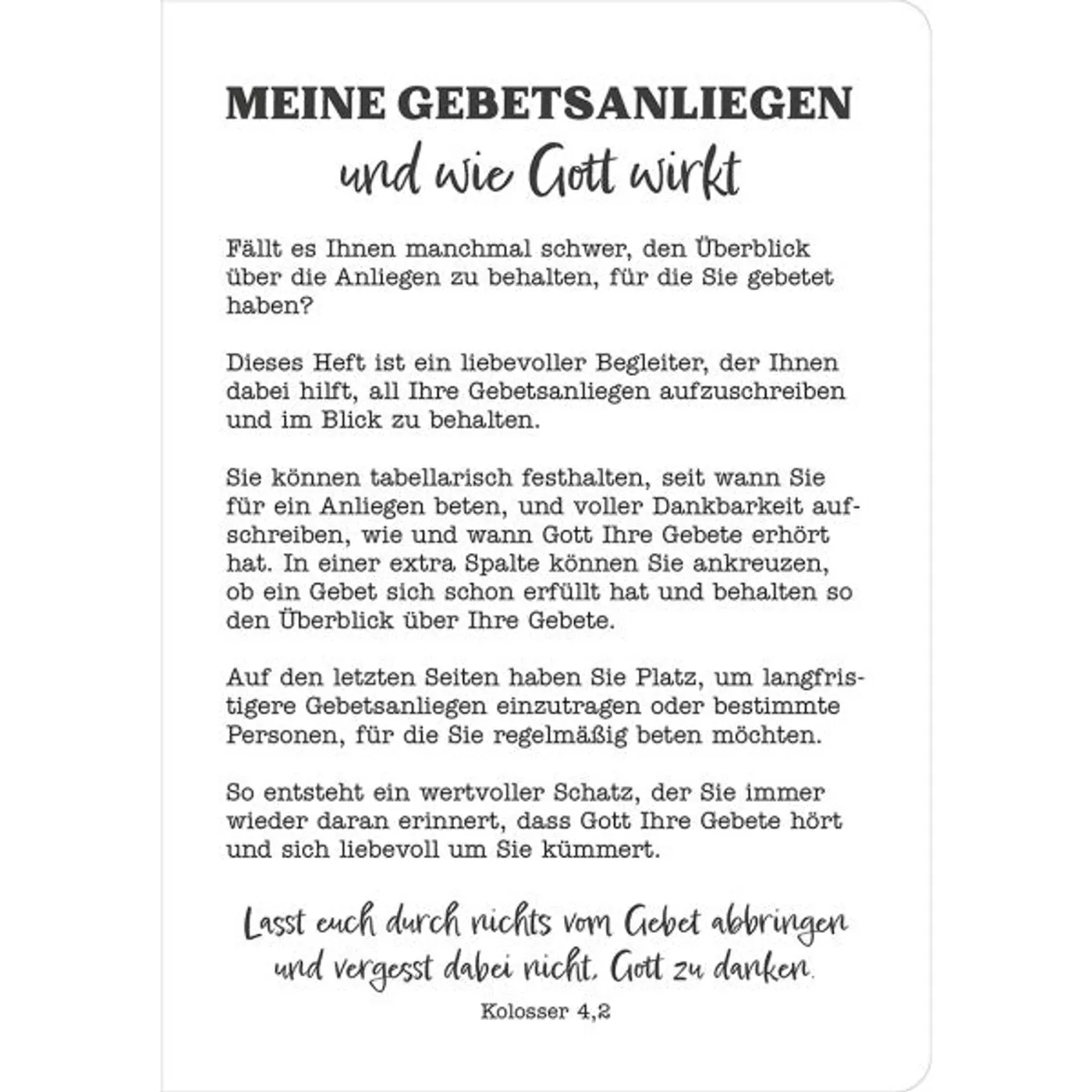 Notizbuch - Gebetsanliegen im Blick behalten