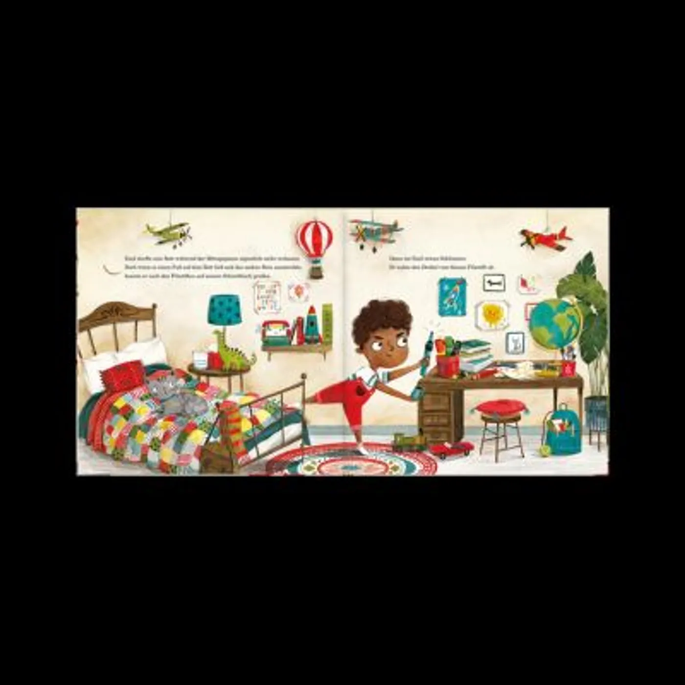 Emil muss während der Mittagsruhe im Bett bleiben, doch das ist langweilig. Und deshalb streckt er sich und schaut, wie weit er gehen kann, ohne die Regeln wirklich zu brechen.