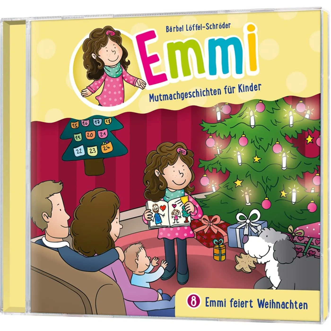 Ja, und nun geht es mit Emmi auf Weihnachten zu. Das erste Adventskalendertürchen wird geöffnet: Sowohl daheim als auch im Kindergarten. Und dann verschwindet ihr Hund »Fröhlich«! (Hier große Aufregung und Mitfiebern meiner Töchter.) Der Weihnachtsbaum wird geholt und die Geschichte von Jesus wird eingeflochten.