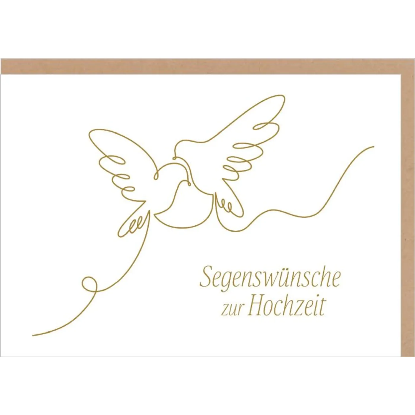 Überreiche zur Hochzeit einen besonderen Gruß mit dieser geschmackvollen Karte. Auf der Vorderseite sind zwei stilvolle Vögel im Oneline-Stil dargestellt, die scheinbar gemeinsam fliegen – ein symbolträchtiges Motiv für Zusammenhalt und Liebe. Der Text „Segenswünsche zur Hochzeit“ ergänzt das Design und hebt die Bedeutung des besonderen Anlasses hervor.