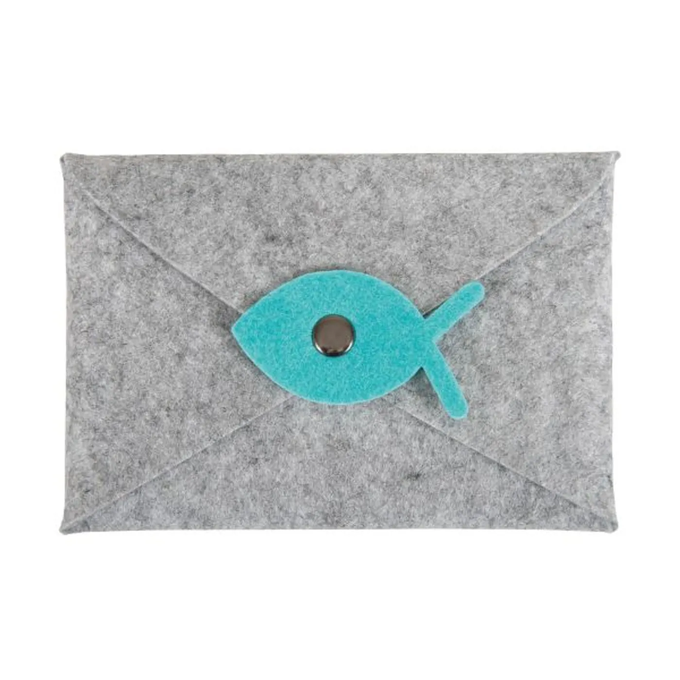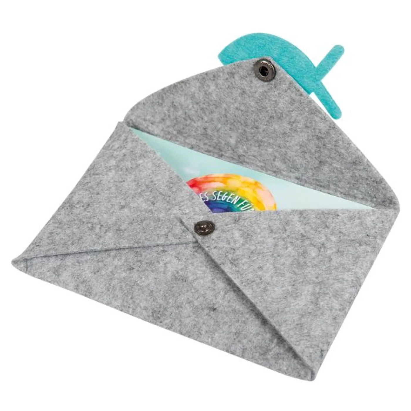 Das Geschenk-Kuvert aus hellgrauem Filz ist ideal, um Geldgeschenke dekorativ zu verpacken.
