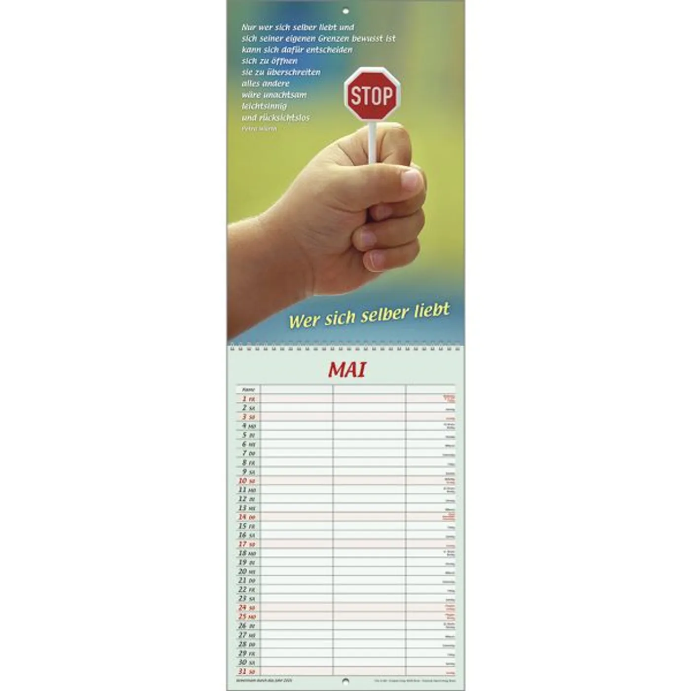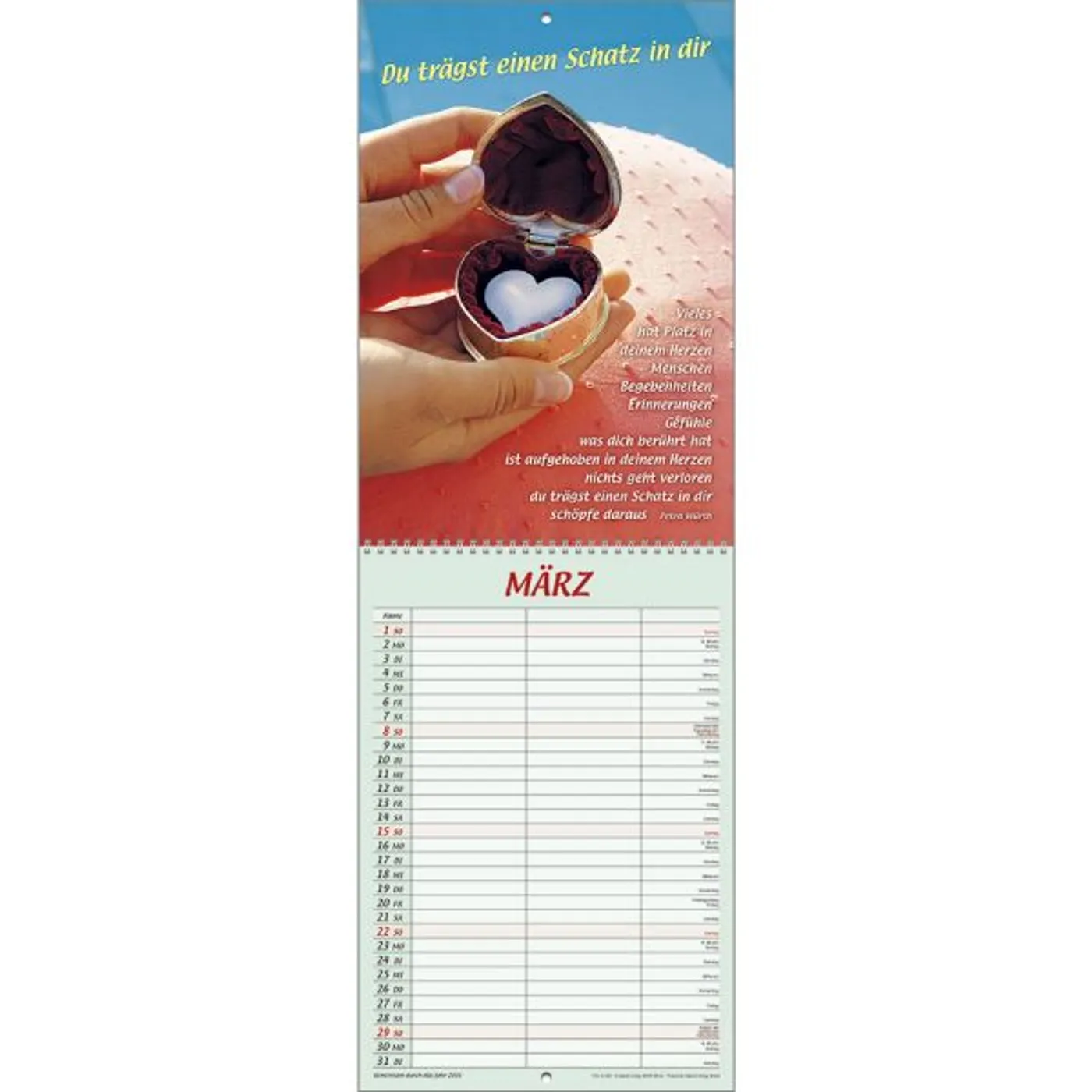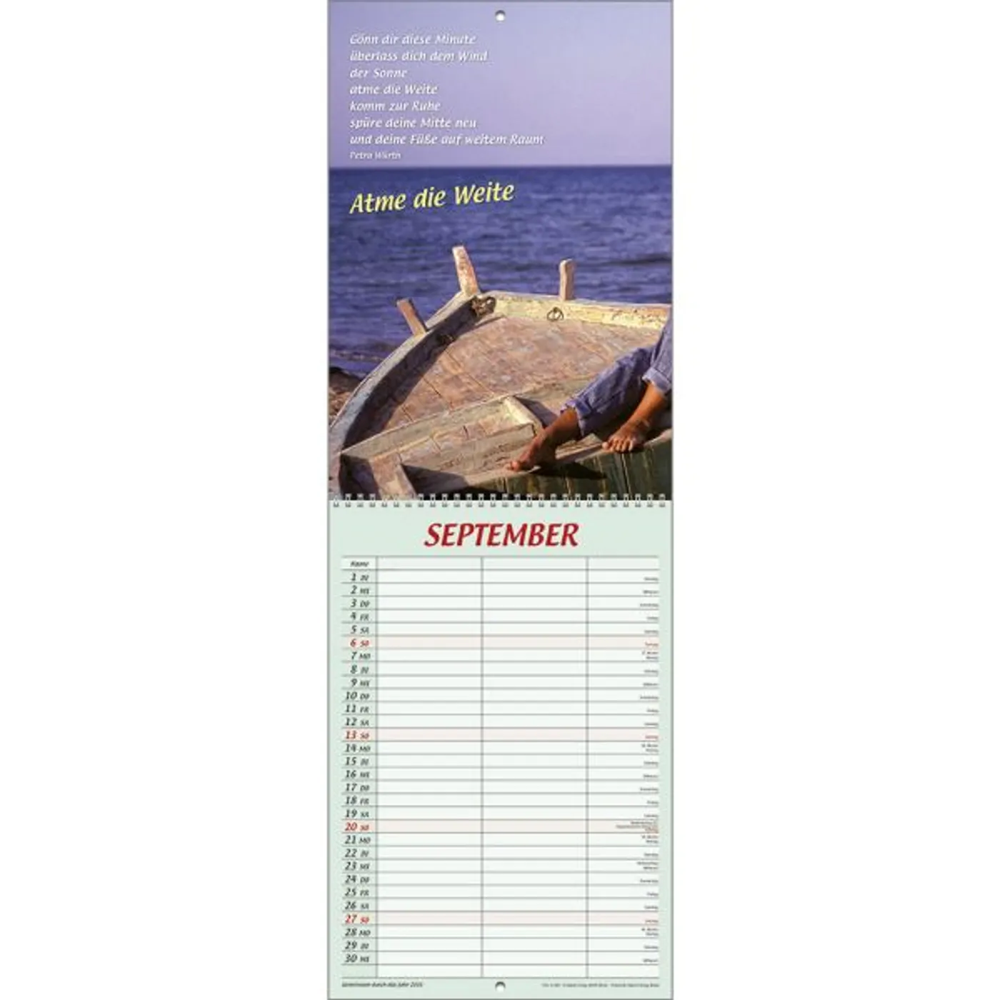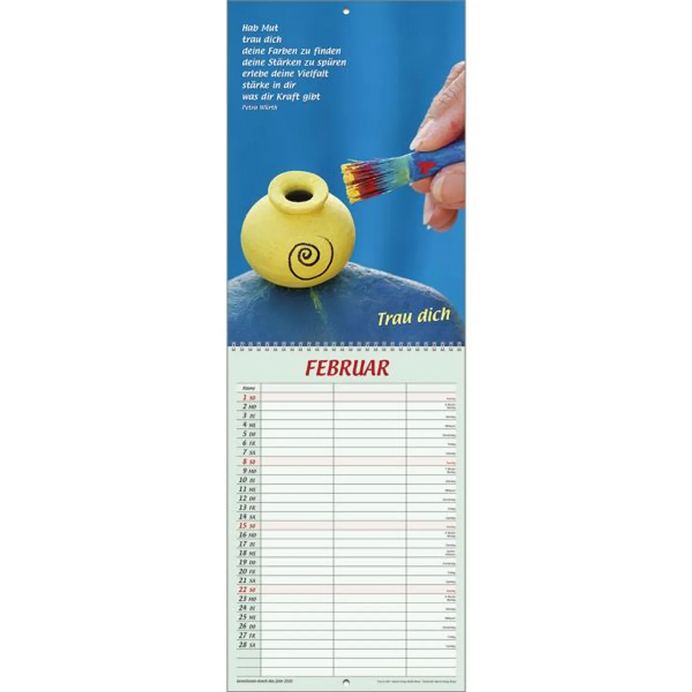 Der beliebte Double-Size-Terminer im etwas kleineren Format mit zwei Spalten und einem Bereich für Geburtstags- und Gedenktage.