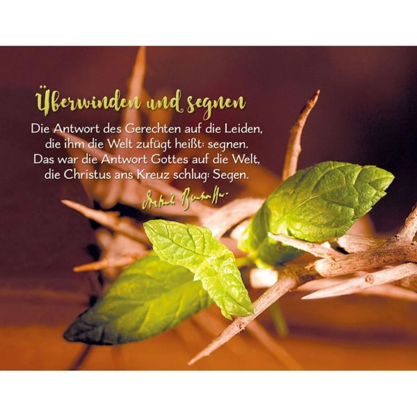 Dietrich Bonhoeffer hat uns durch sein Denken, Wirken und Schreiben einen großen geistlichen Reichtum hinterlassen. In diesem Postkarten-Aufstellbuch finden Sie besonders prägnante Sinnsprüche und Zitate von ihm mit brillanten symbolstarken Bildern - zur geistlichen Inspiration, Orientierung und Ermutigung.