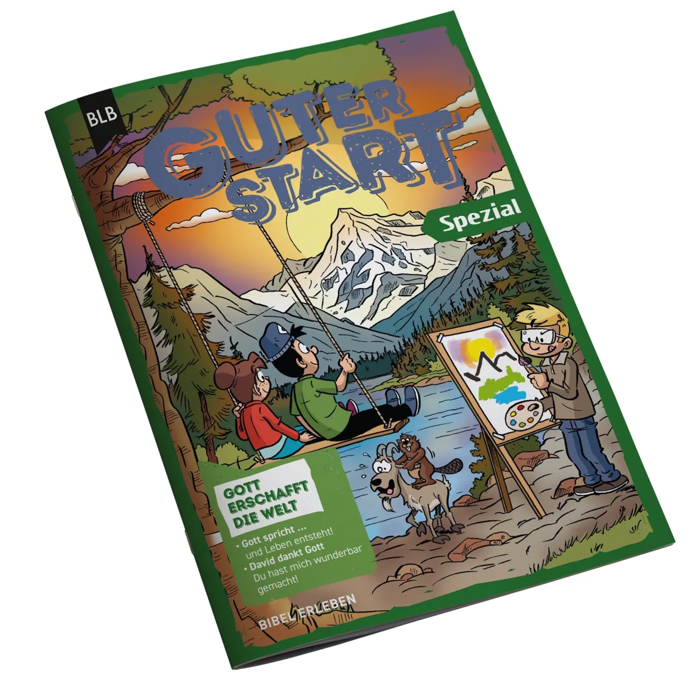 Das Guter Start-Spezialheft „Gott erschafft die Welt“ ist ein niedrigschwelliges Einsteigerheft – ideal für Kinderbibelwochen, Kinderfreizeiten oder zum Kennenlernen der Bibellese-Zeitschrift.