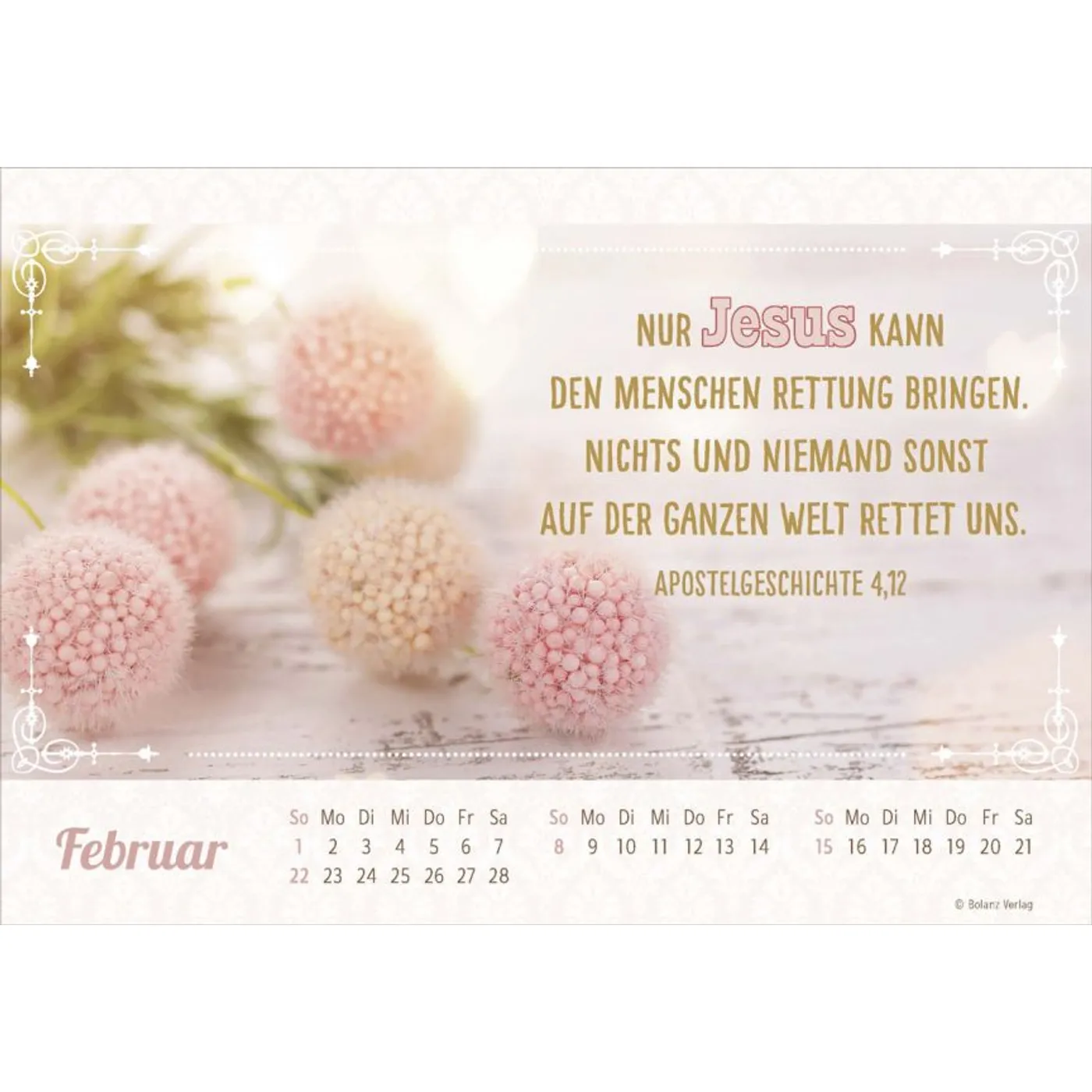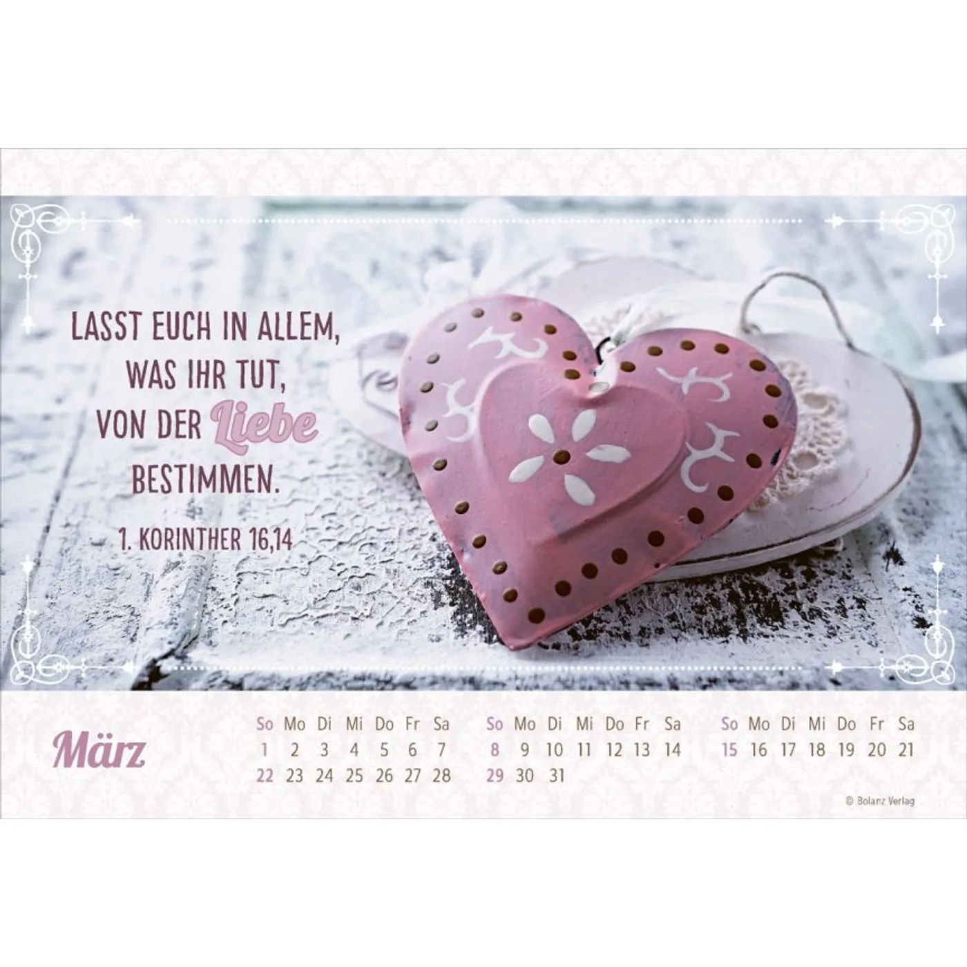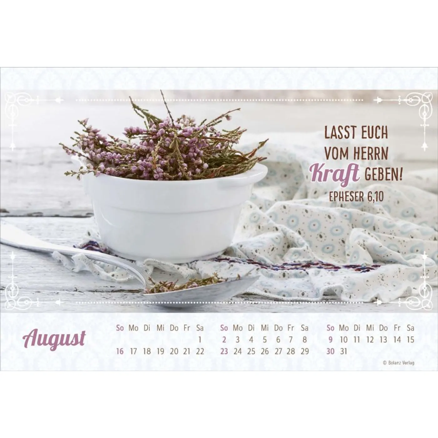 Jedes Bild erzählt eine Geschichte und erinnert daran, dass wahre Schönheit zeitlos ist. Die ausgewählten Bibelverse ergänzen die Fotos perfekt und bieten dir christliche Impulse, die dich im Alltag begleiten. Ob im Büro, in der Küche oder im Wohnzimmer – dieser Kalender wird zum Blickfang in jedem Raum.