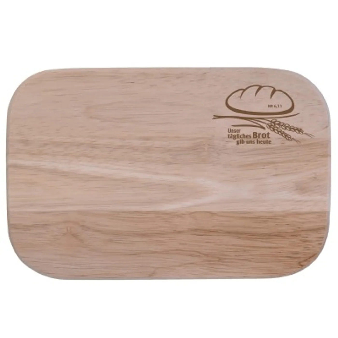 Unser beliebtes Frühstücksbrettchen mit eingeprägtem Vers „Unser tägliches Brot gib uns heute Mt 6,11" , Buchenholz