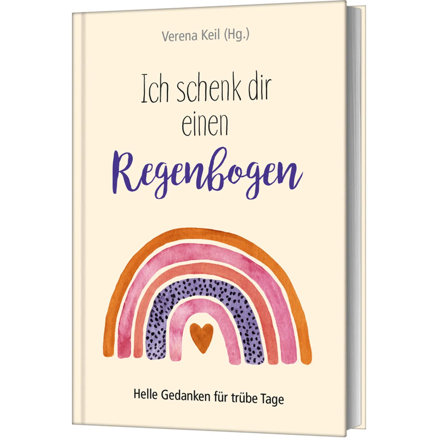 Das kleinformatige Hardcoverbüchlein "Ich schenk dir einen Regenbogen - Helle Gedanken für trübe Tage" stammt von Herausgeberin Verena Keil und ist mit ca. 144 Seiten Mitte Februar diesen Jahres im Gerth Medien-Verlag erschienen. Das Cover setzt in seiner schlichten Einfachheit den Titel auf hübsche Art und Weise in Szene.
