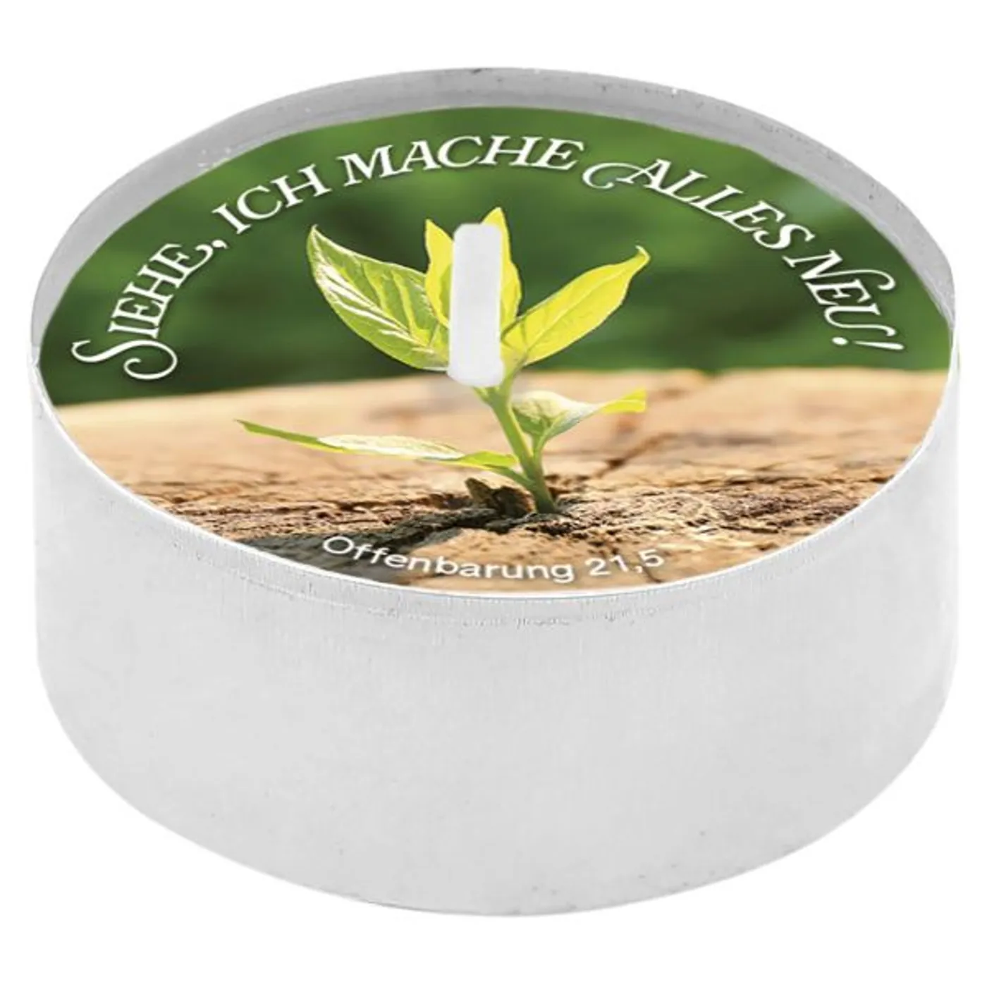 Text auf dem Teelicht: Siehe, ich mache alles neu!