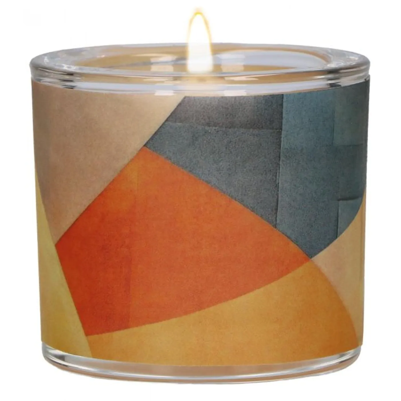 Mit farbig bedrucktem Pergamentumleger, Teelicht, Lieferung in türkiser Geschenkverpackung