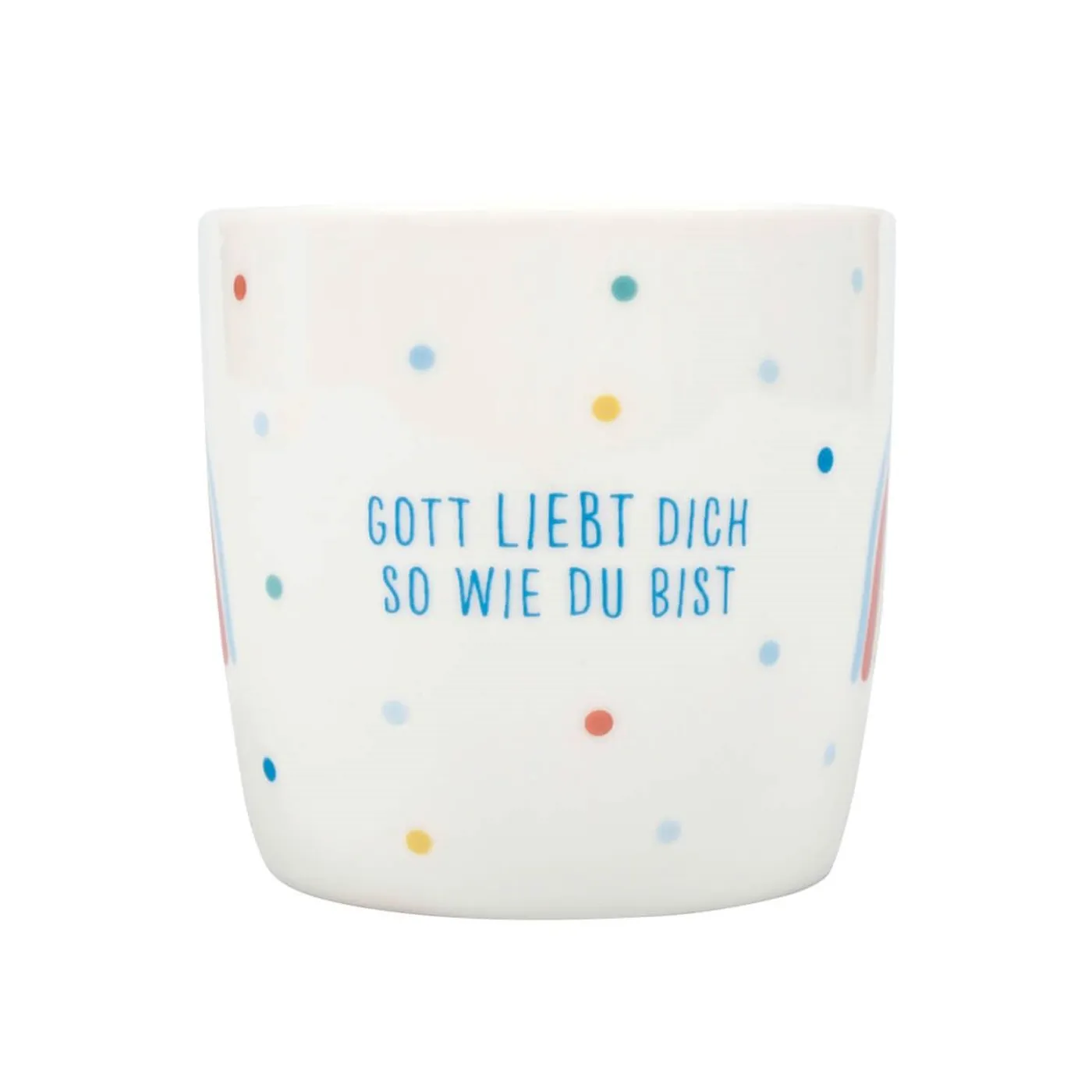 Die schöne Tasse bildet mit der Müslischale eine wunderbare Einheit und der Spruch tut Kindern sicher gut.