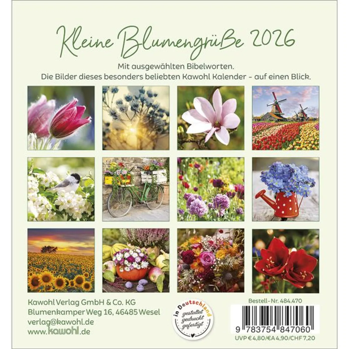 Wunderschöne, strahlende Bilder machen diesen aparten Kalender zu einem nicht verblühenden Blumengruß. Wegweisende, Mut machende Bibelworte verstärken die Bildwirkung und geben diesem Kalender seine unverwechselbare, leuchtende Ausstrahlung.