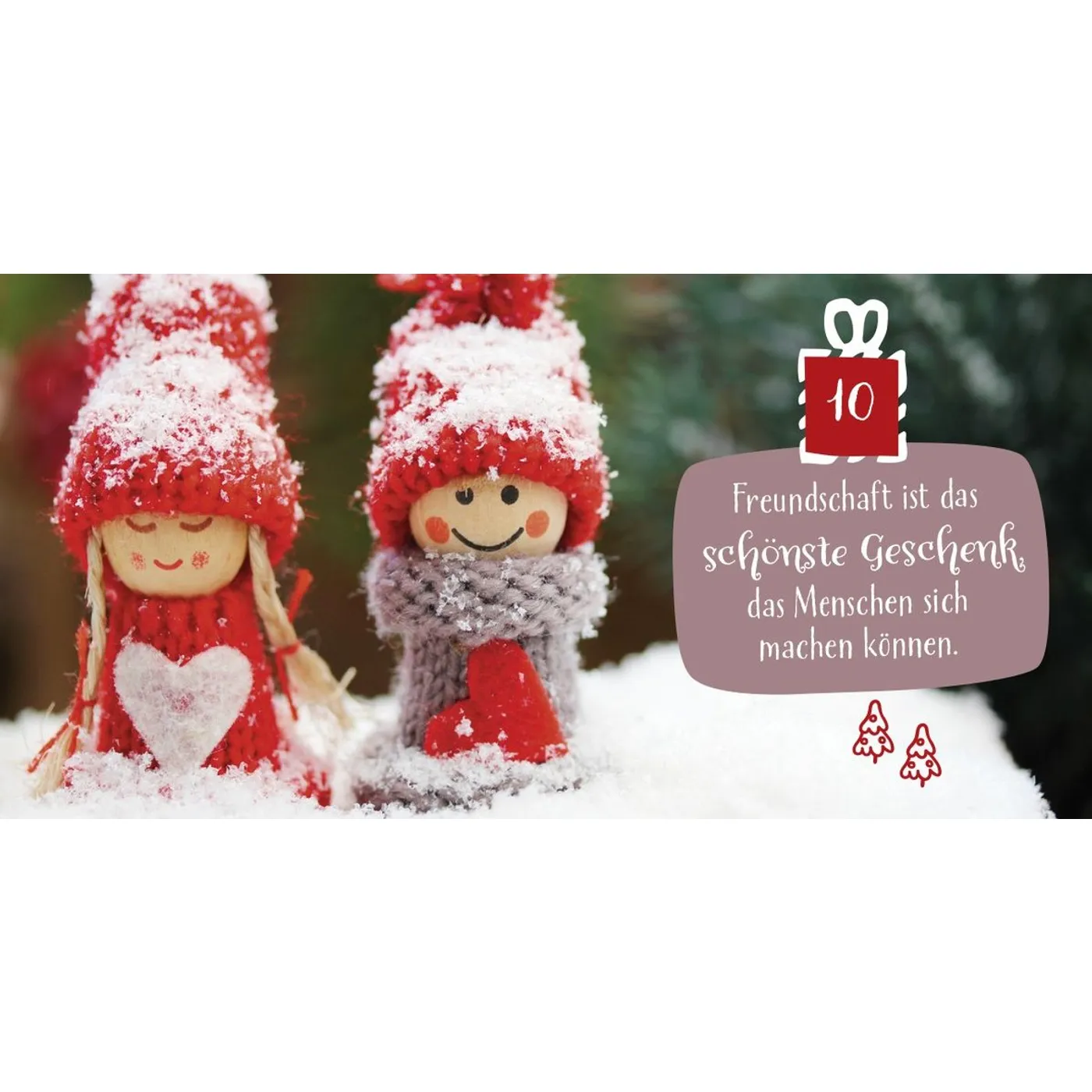 Dieser schnuckelige Adventskalender im kleinen Format ist ein tolles Wichtelgeschenk und eignet sich auch, um einen selbst gebastelten Kalender zu füllen. Die Seiten lassen sich ganz einfach abtrennen und können auch als Geschenkanhänger weiterverwendet werden. Jeden Tag machen sie mit einem schönen weihnachtlichen Zitat und einem stimmungsvollen Foto Freude – und stimmen perfekt auf das schönste Fest des Jahres ein.