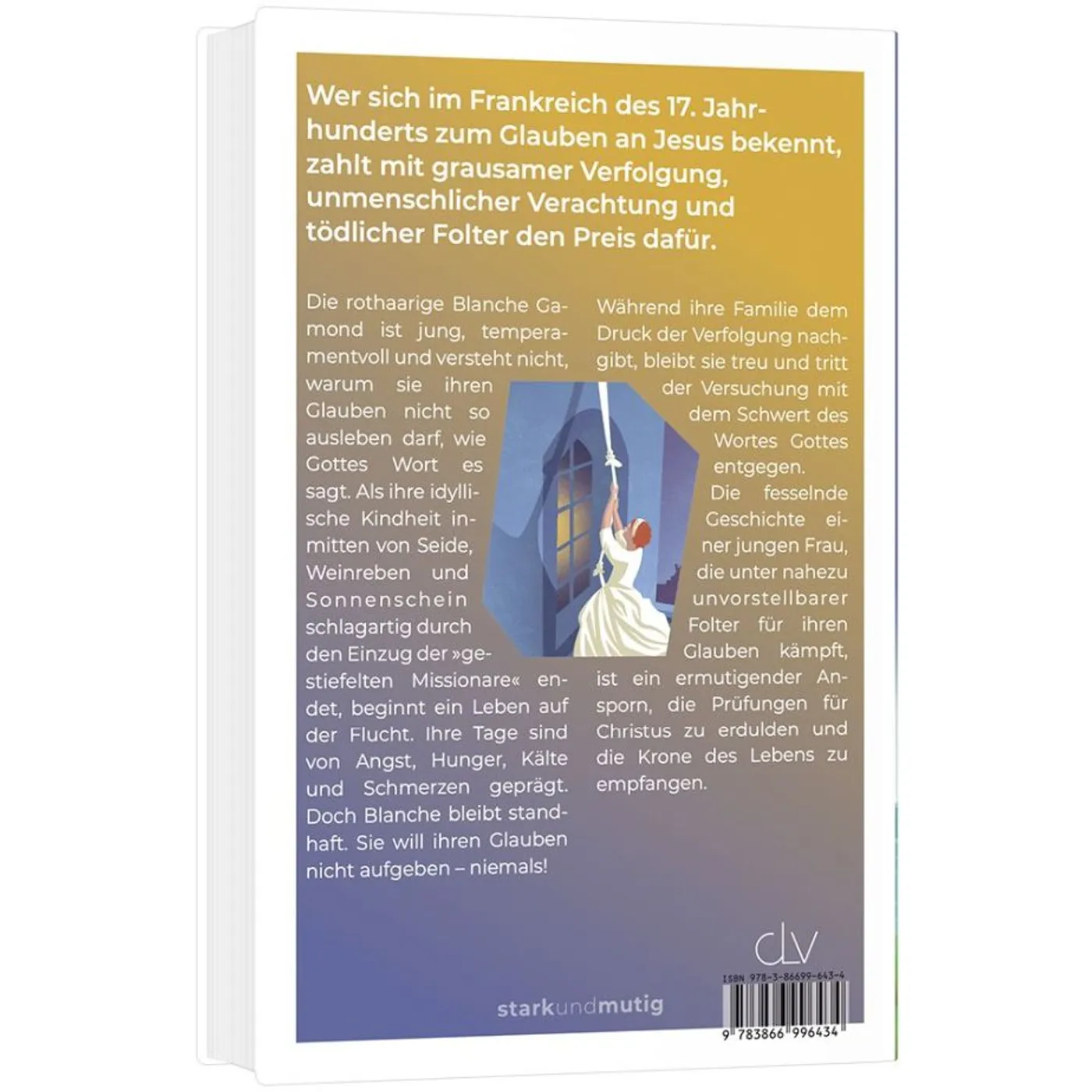 Die rothaarige Blanche Gamond ist jung, temperamentvoll und versteht nicht, warum sie ihren Glauben nicht so ausleben darf, wie Gottes Wort es sagt. Als ihre idyllische Kindheit inmitten von Seide, Weinreben und Sonnenschein schlagartig durch den Einzug der »gestiefelten Missionare« endet, beginnt ein Leben auf der Flucht. Ihre Tage sind von Angst, Hunger, Kälte und Schmerzen geprägt. Doch Blanche bleibt standhaft. Sie will ihren Glauben nicht aufgeben – niemals!