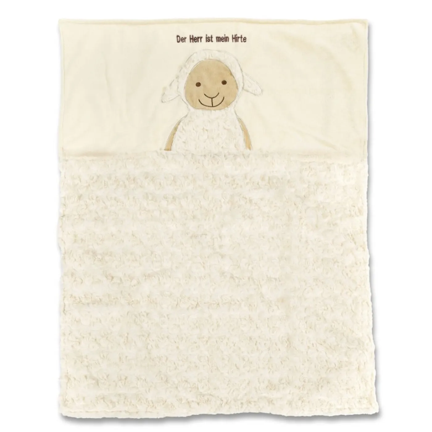 Kuschelweiche Decke für die Kleinsten, ca. 60x78 cm, bestickt mit „Der Herr ist mein Hirte“, 100% Polyester, zertifiziert nach EN71, handwaschbar bei 30°C