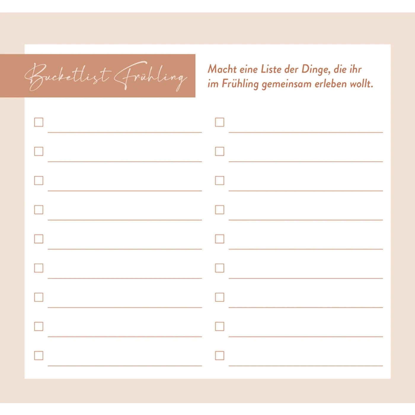 Große Gefühle für alle Wochen des Jahres. Bibelverse, Zitate und Gedanken lassen die vielen Facetten der Liebe aufleuchten. Das frische Design und die mit viel Liebe gestalteten Seiten laden zum Träumen ein. Auf den Rückseiten der Blätter sorgen kleine Ideen, spannende Fragen und inspirierende Texte dafür, dass die Romantik auch im Alltag nicht zu kurz kommt. Ein Aufstellbuch für Verliebte, Verlobte und Verheiratete.