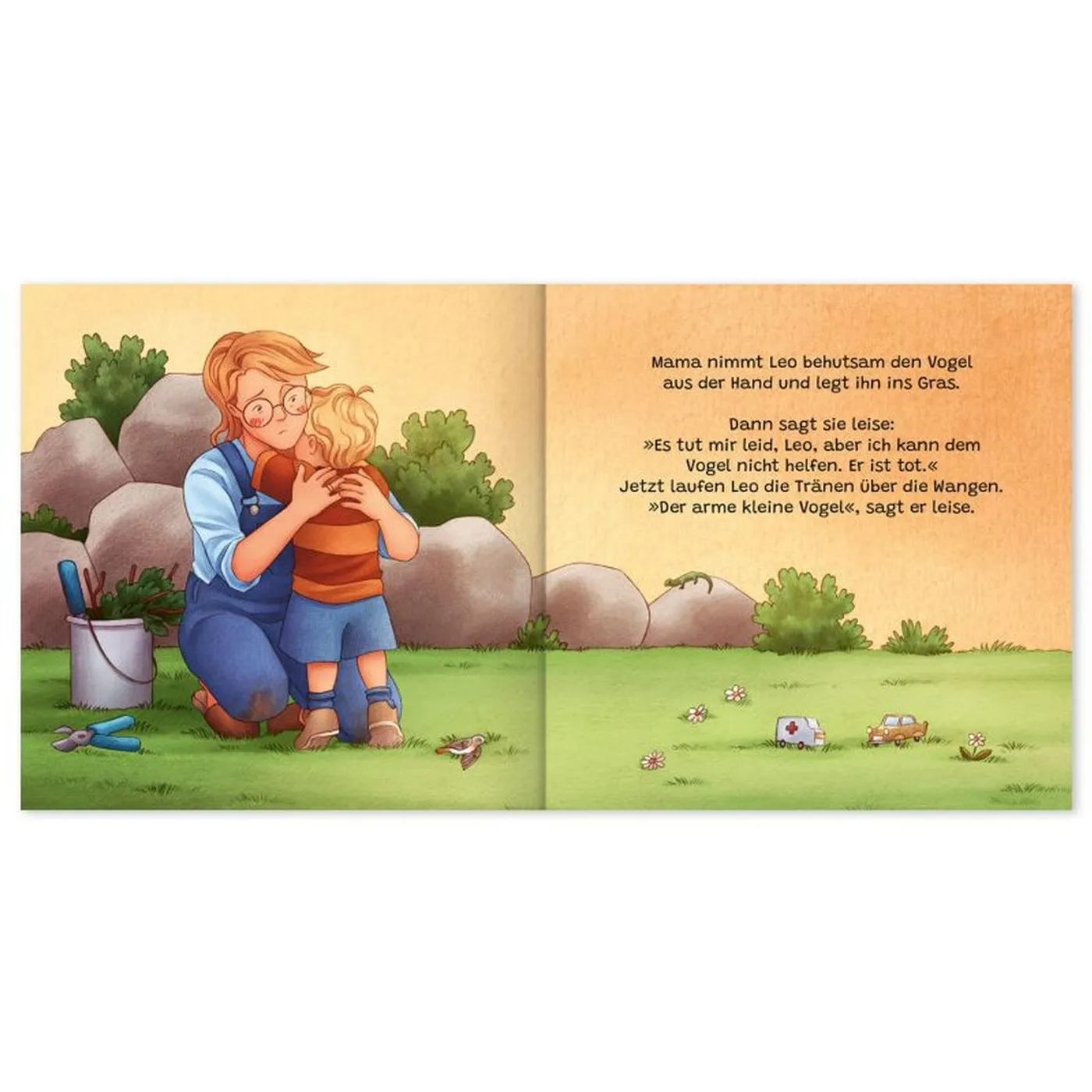 In "Leo und der kleine Vogel" wird die Geschichte über Trauer und Trost in wenigen Worten, mit wunderschönen Bildern, kindgerecht erzählt und ist von Herzen zu empfehlen.