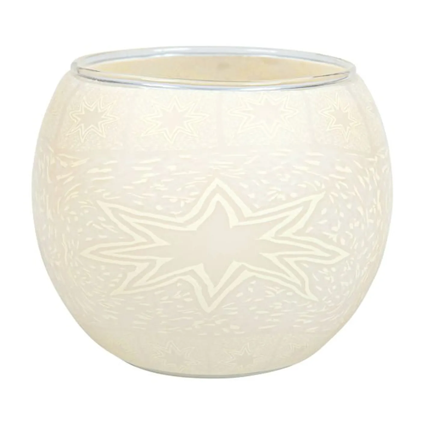 Schönes weißes Leuchtglas mit Sternmotiv für Teelichte und LED.