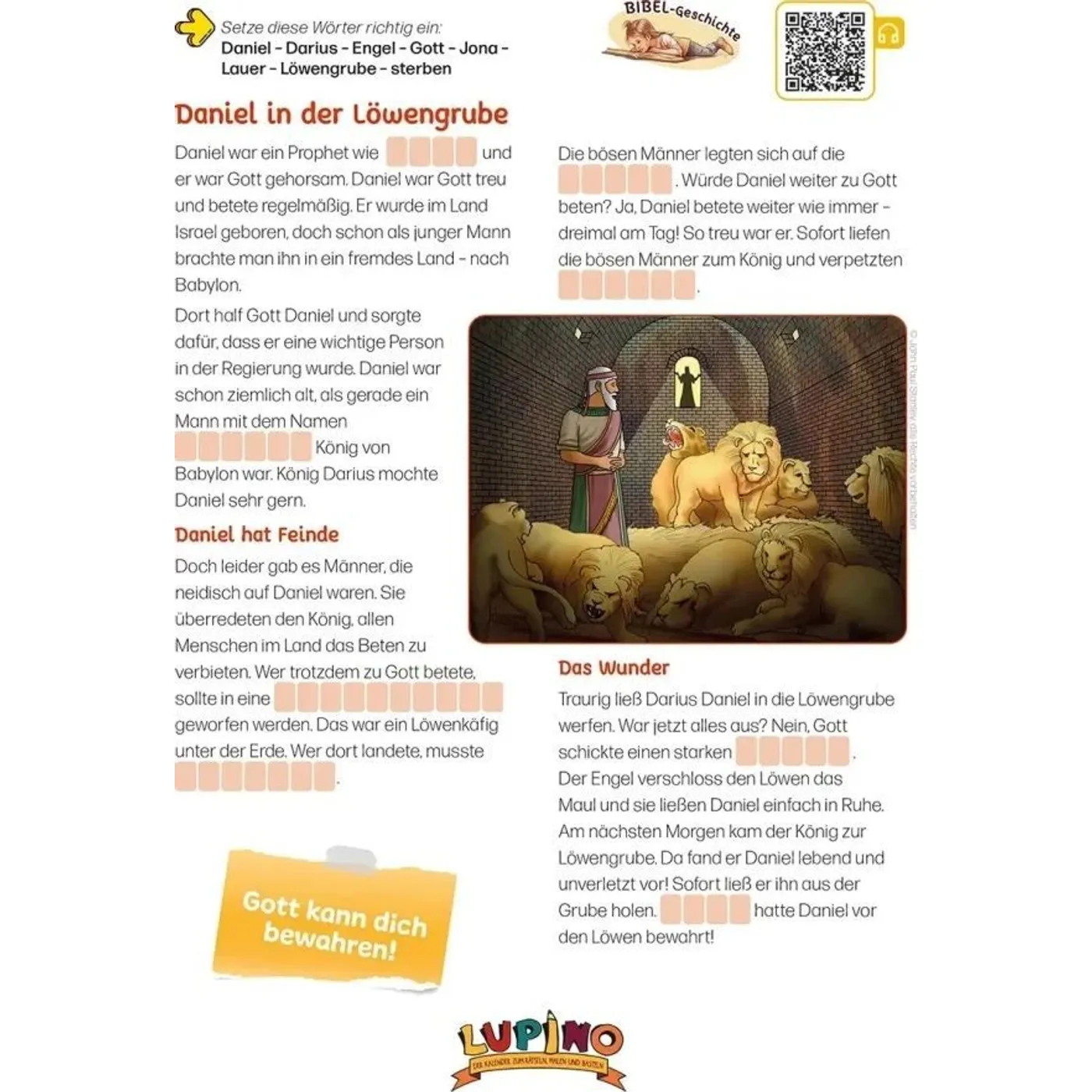 Der Kinderkalender zum Lesen und Malen und Basteln! Der Lupino enthält auf 24 Seiten: Spannende Berichte aus der Bibel, ansprechende Kurzgeschichten, Bibelverse (zum Auswendiglernen), 24 Bilder zum Ausmalen und ein 2-Wochen-Kalendarium. Für Kinder im Vorlesealter und im ersten Lesealter.