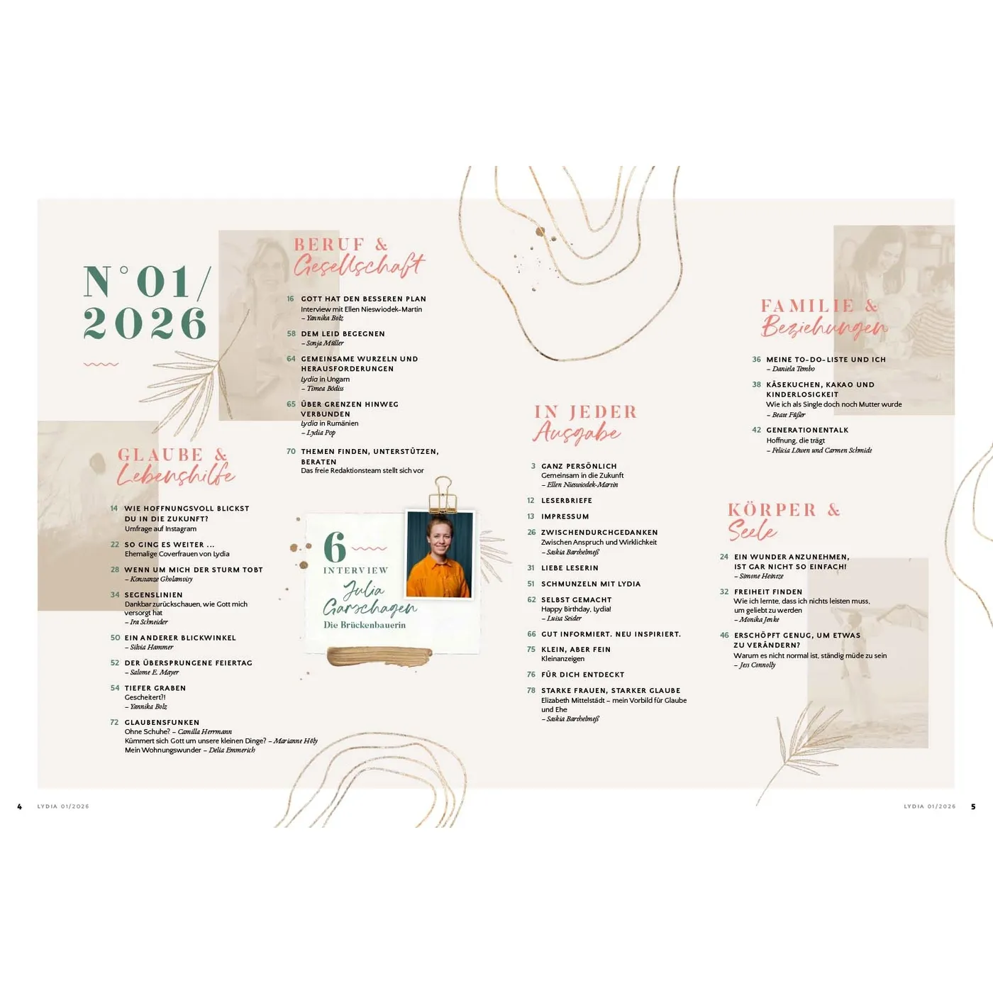 Lydia lädt Frauen ein, das Leben zu teilen und miteinander unterwegs zu sein. In den schönen Momenten aber auch in Zeiten der Angst und Sorge weist sie auf den hin, der Hoffnung und Sinn gibt: Jesus. Die Zeitschrift begleitet und ermutigt Frauen in den verschiedenen Lebensphasen – über die Grenzen von Konfessionen und Generationen hinweg. Auf dieser Plattform können Frauen voneinander lernen und sich gegenseitig beraten, egal ob Single, junge Mutter, Berufstätige oder Seniorin. Durch persönliche Erfahrungsberichte und Ratgeberartikel erleben die Leserinnen Gottes Handschrift ganz nahbar und bekommen wertvolle Impulse für den Alltag. Lydia bietet 4 x im Jahr: • Ermutigung im Glauben & Lebenshilfe durch den Austausch mit anderen Frauen • Geistliche Impulse, die Körper & Seele stärken • Ehrliche Einblicke, wie Familie & Beziehungen gelebt werden können • Inspirierende Berichte, wie Frauen in Beruf & Gesellschaft einen Unterschied machen Was Lydia-Leserinnen sagen: „Ich finde es so wunderbar, dass in Lydia mutige Frauen ihre Geschichte teilen und mir die Möglichkeit geben, ganz echt, nahbar und tief in ihr Leben hineinzuschauen. Lydia schafft es, eine große Breite an Themen aufzustellen und diese mit so wertvollem Input zu füllen. Für jede ist etwas dabei!“ Ronja Aselmann Egal, ob zum Muttertag, zu Weihnachten, zum Geburtstag, als Dankeschön oder einfach nur so: Ein Lydia-Abo ist eine wertvolle Geschenkidee für die beste Freundin, Schwester, Mutter, Tochter oder andere Wegbegleiterinnen. Als Lydia-Botschafterin können Sie Hefte weitergeben, um mithilfe der Zeitschrift anderen Frauen von Jesus zu erzählen.