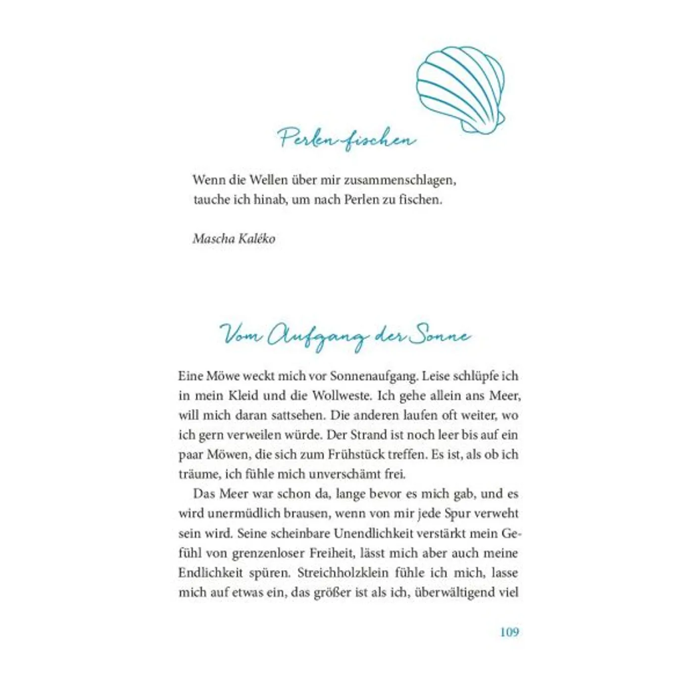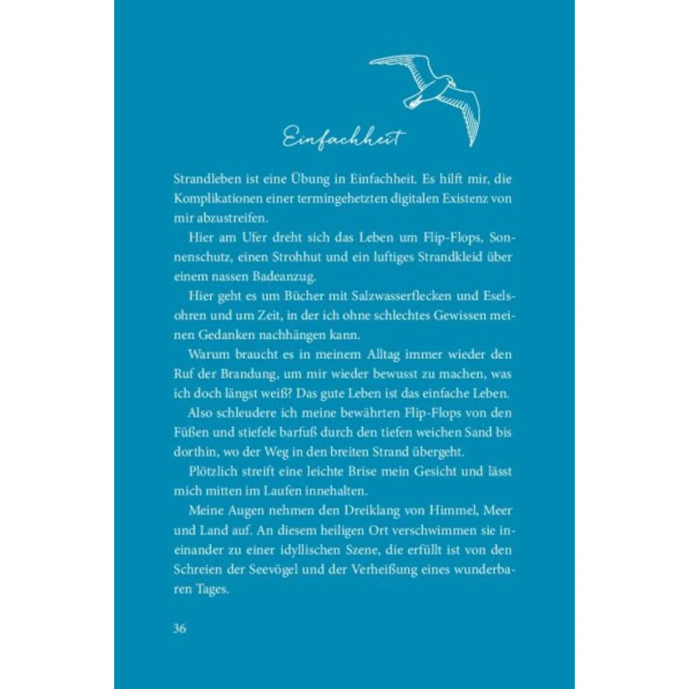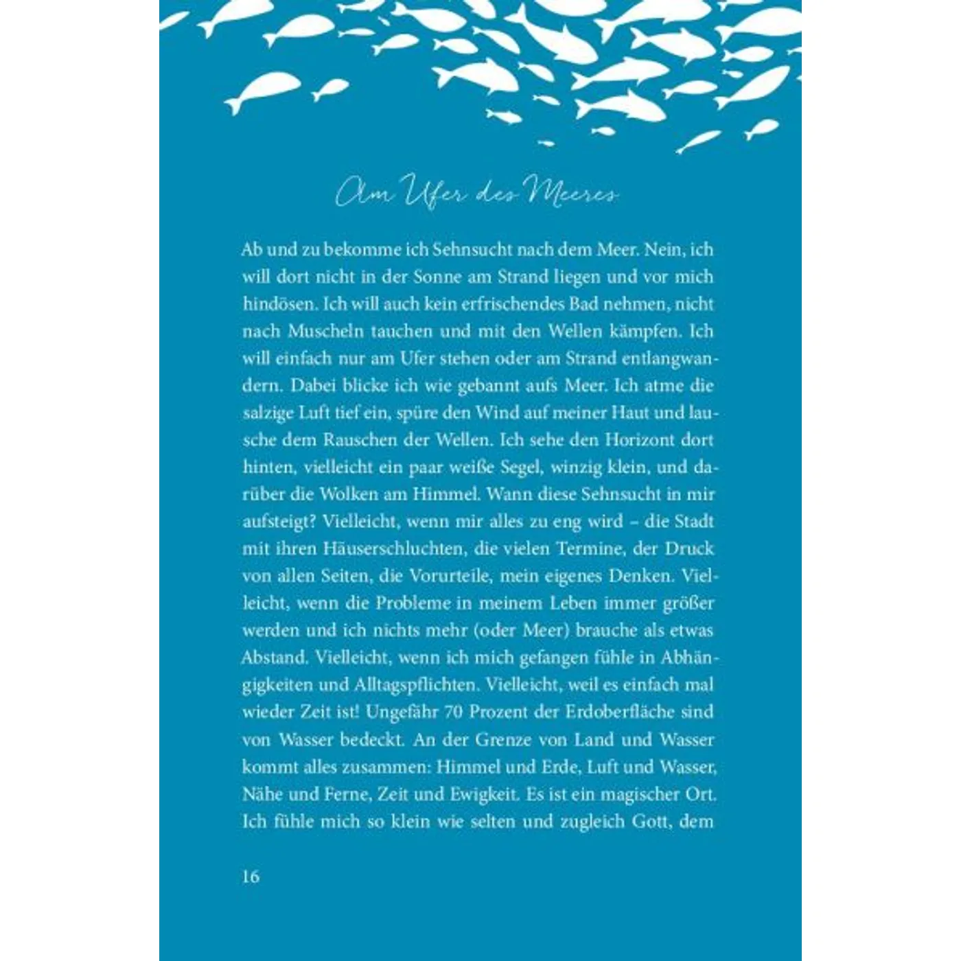 Die Gestaltung des Buches: so schön - herrlich meerig! Und dann die Texte: die sind einfach nur wunderschön. Seit einer Woche lese ich jeden Abend ein paar Seiten und genieße es am Meer zu sein! Es ist so schön, es tut meiner Seele so gut.