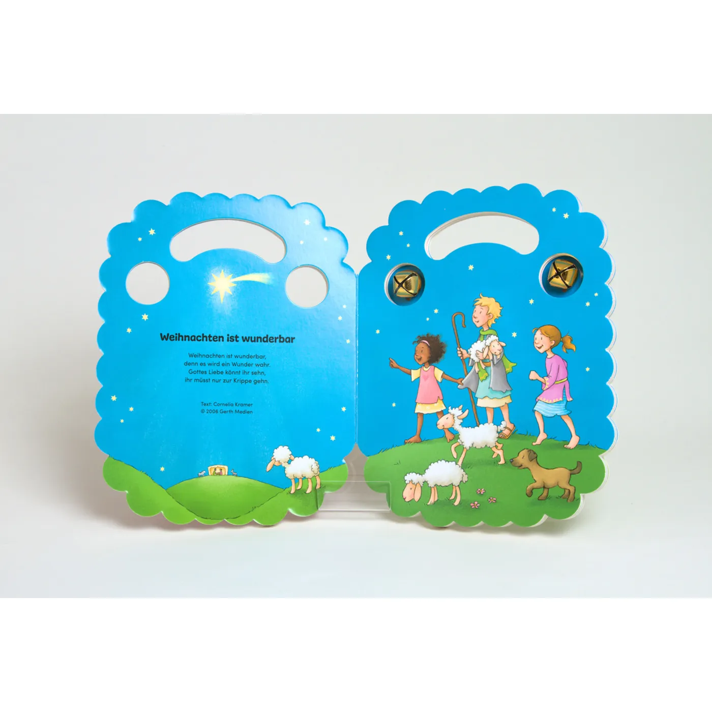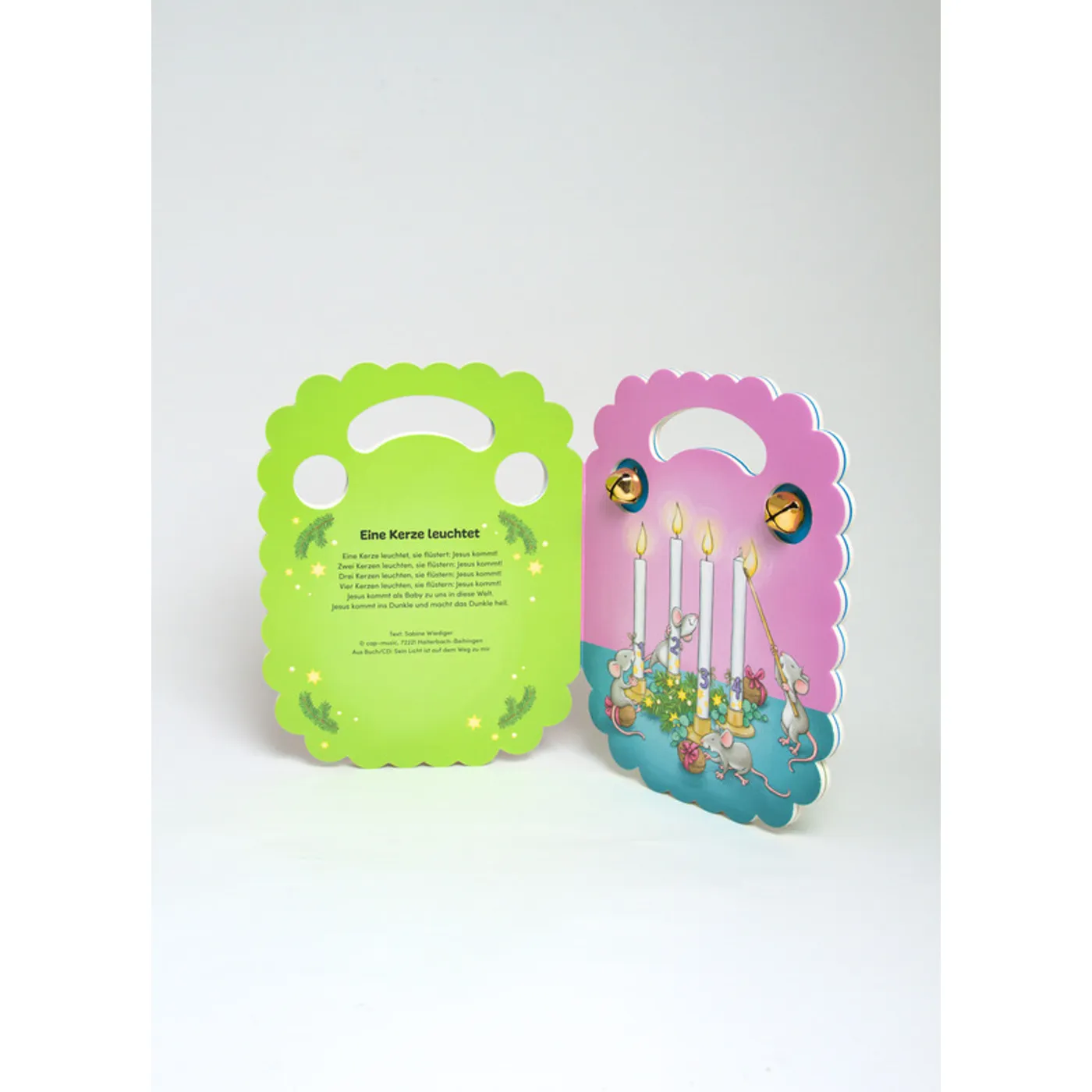 Vier bekannte Kinderlieder aus Gottesdienst und Krabbelgruppe laden hier zum Mitsingen und Musizieren ein. Am Handgriff lässt sich das Buch gut festhalten, um die eingearbeiteten Glöckchen zum Klingen zu bringen. Nicht nur die kindliche Freude am Singen findet so Ausdruck: Spielerisch werden Rhythmusgefühl, Konzentration, Gehör und sprachliche Entwicklung gefördert.