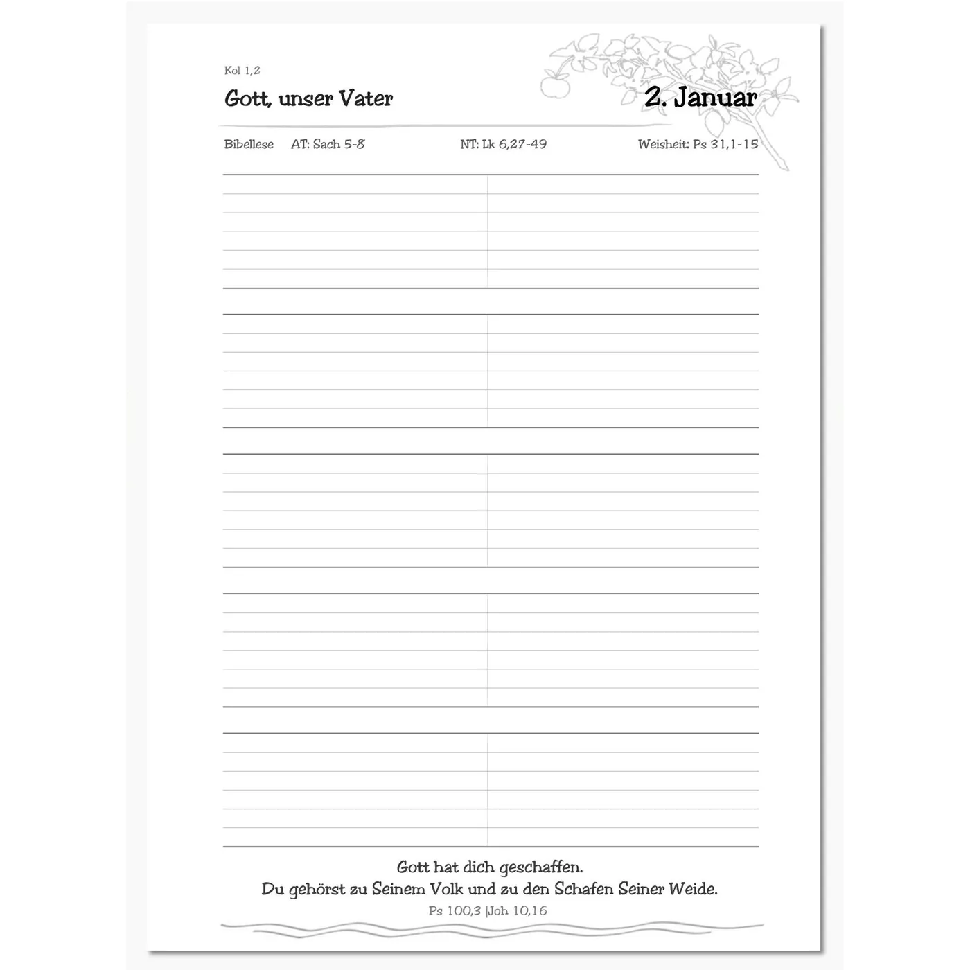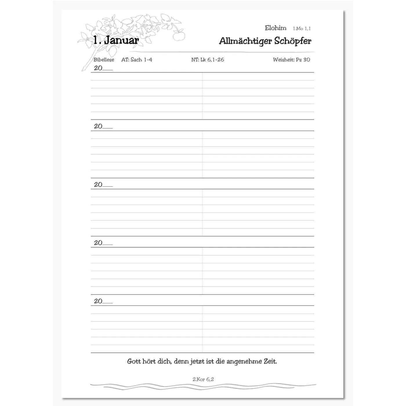 ich finde die Gestaltung sehr schön und die vielen Möglichkeiten jeden Tag einen Abschnitt in der Bibel zu lesen oder einfach über den Namen Gottes nachzudenken.
