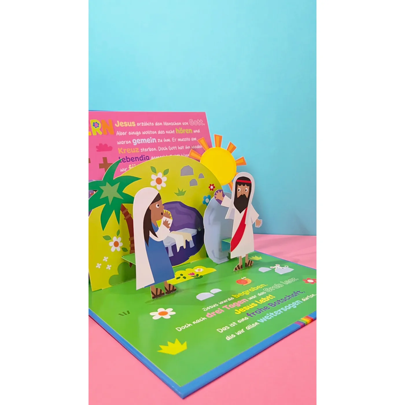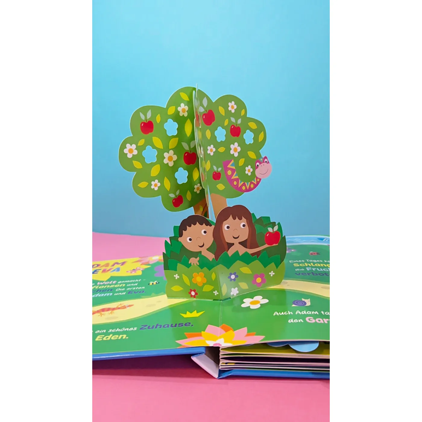 Dieses liebevoll gestaltete Pop-up-Buch begeistert Kinder ab 3 Jahren mit sieben der bekanntesten Bibelgeschichten – kindgerecht erzählt und eindrucksvoll in Szene gesetzt. Beim Umblättern entfalten sich farbenfrohe 3D-Szenen: von Adam und Eva über David, Jona und Daniel bis hin zur Geburt und Auferstehung Jesu.