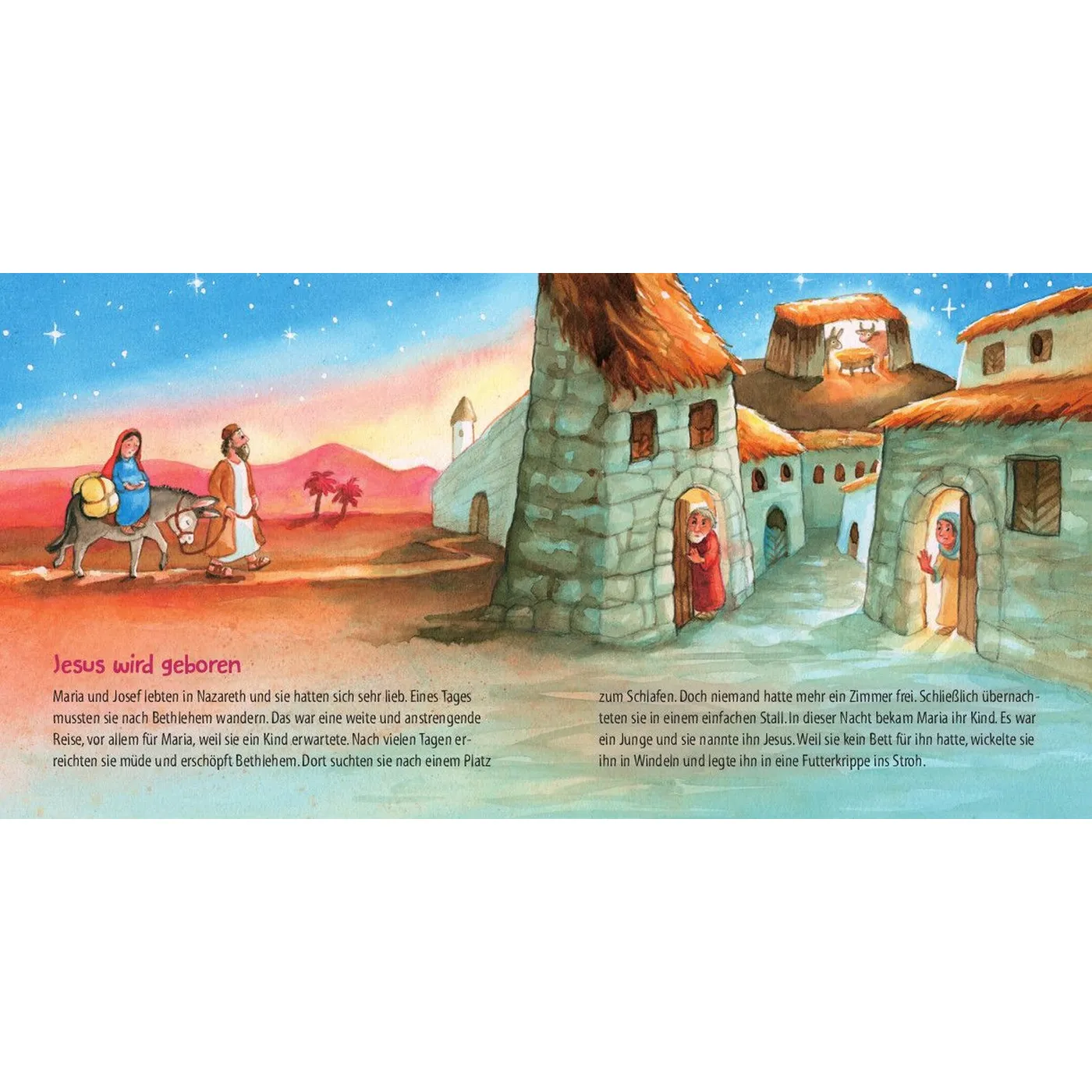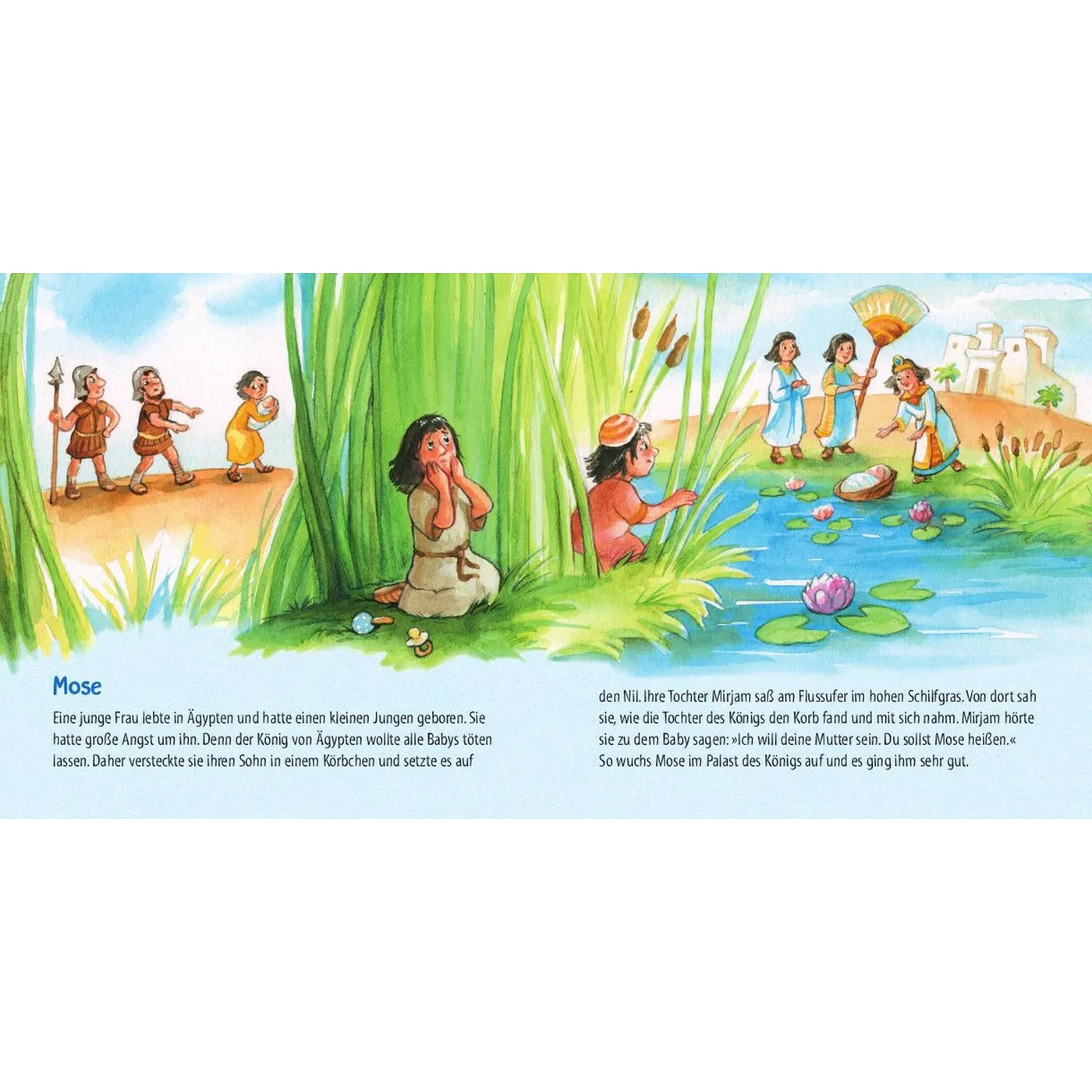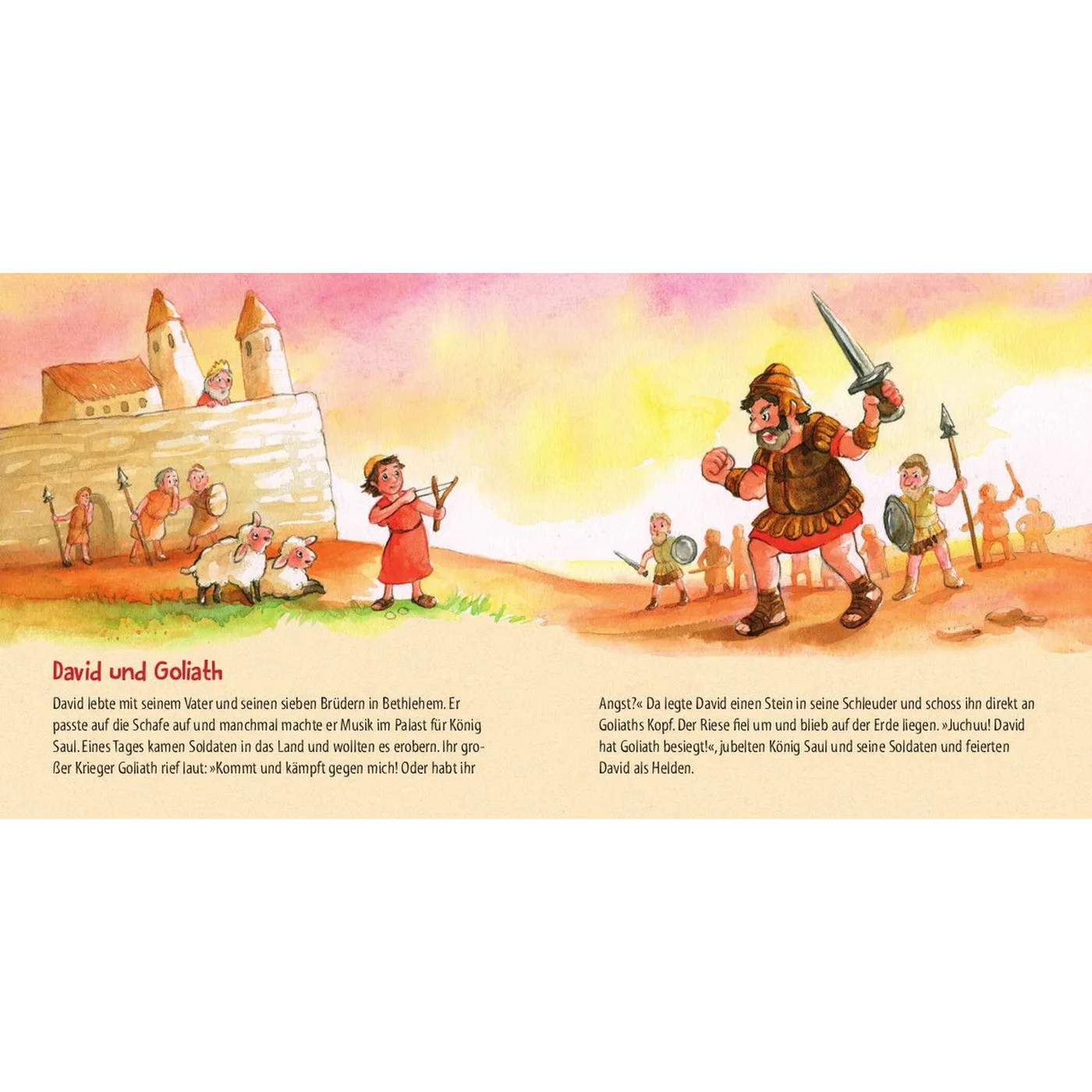 Inhalt: Die Schöpfung, Arche Noah, Mose, David und Goliath, Jona und der Wal, Geburt Jesu, Die Hirten auf dem Feld, Jesus und der Sturm, Jesus und die Kinder, Jesus und Bartimäus, Einzug in Jerusalem, Das Osterfest.