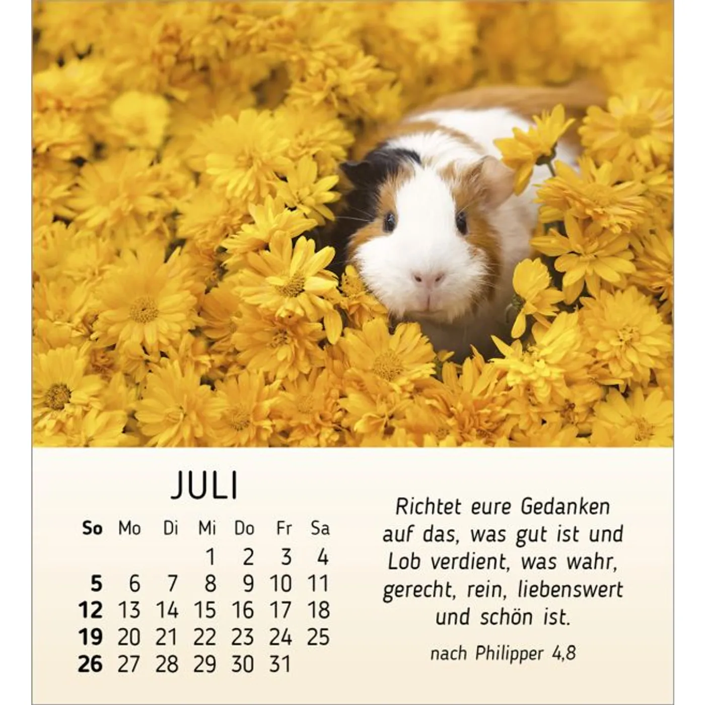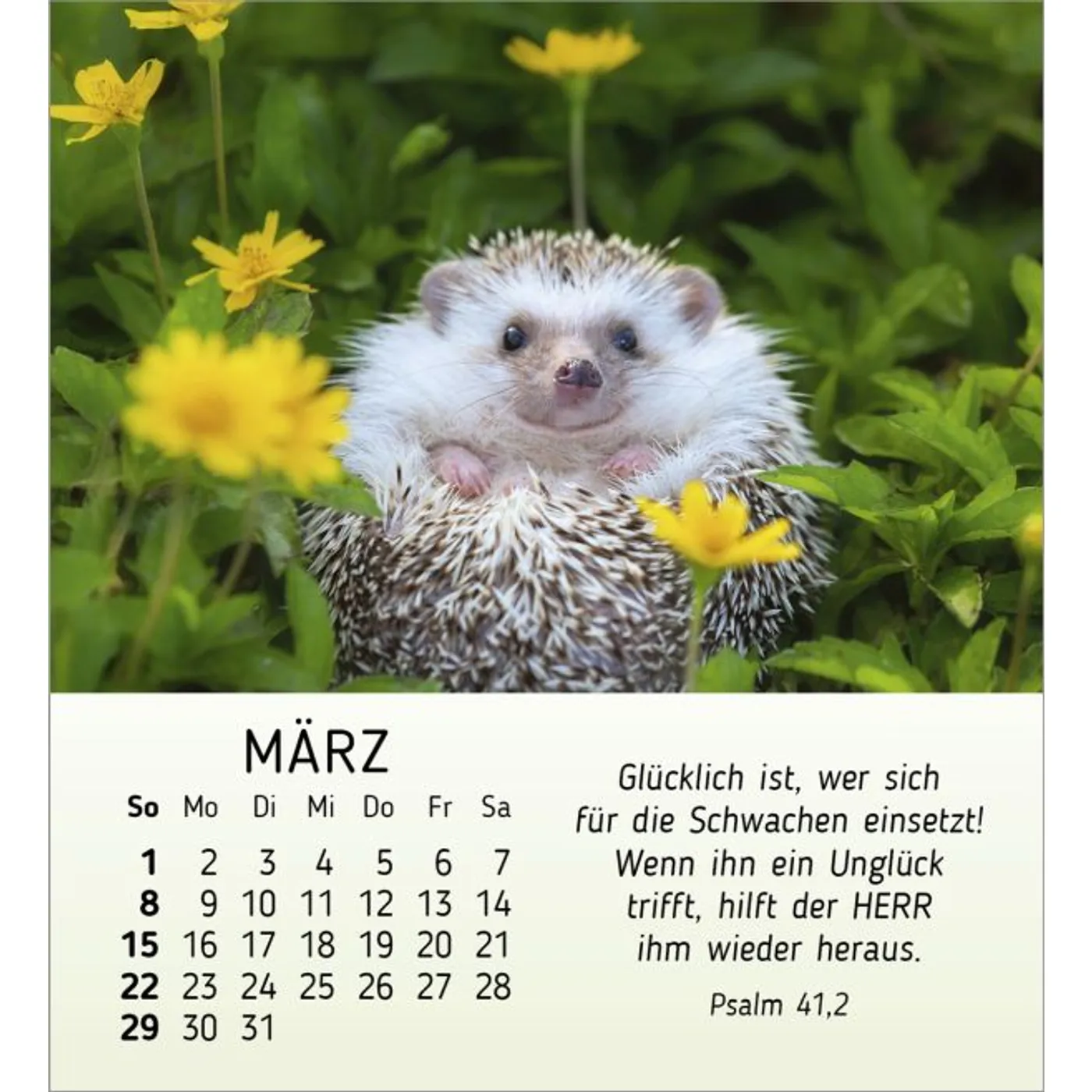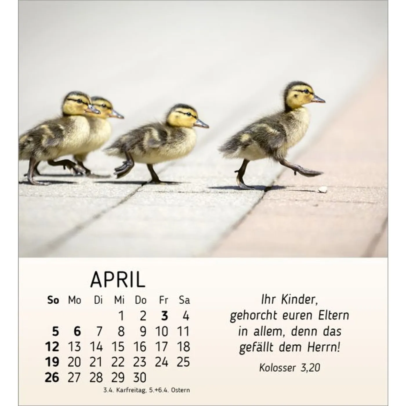 Das handliche Format von 11,5 x 12,6 cm macht ihn perfekt für jedes Kinderzimmer oder den Schreibtisch. Der praktische Aufsteller sorgt dafür, dass der Kalender immer im Blickfeld ist und jeden Tag ein Lächeln zaubert.