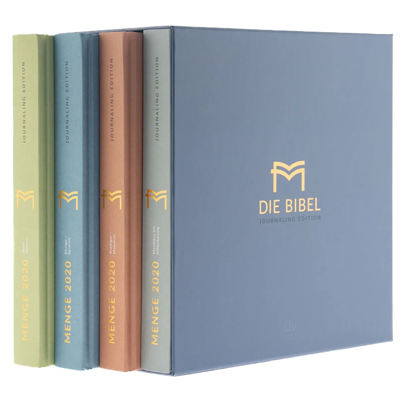 Die komplette Menge 2020 Bibel (drei AT-Bände + ein NT-Band) als Journaling-Edition in einem hochwertigen Schuber.